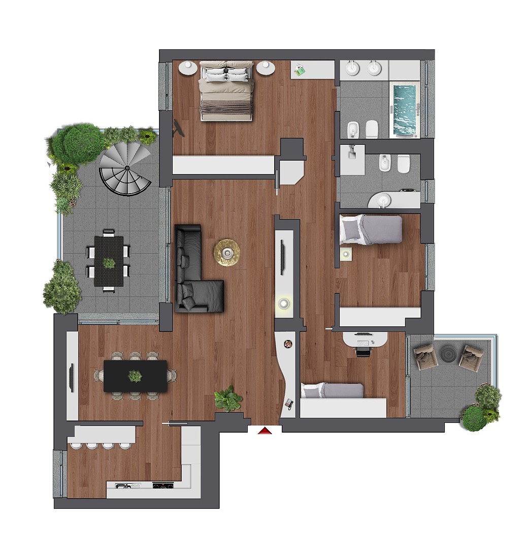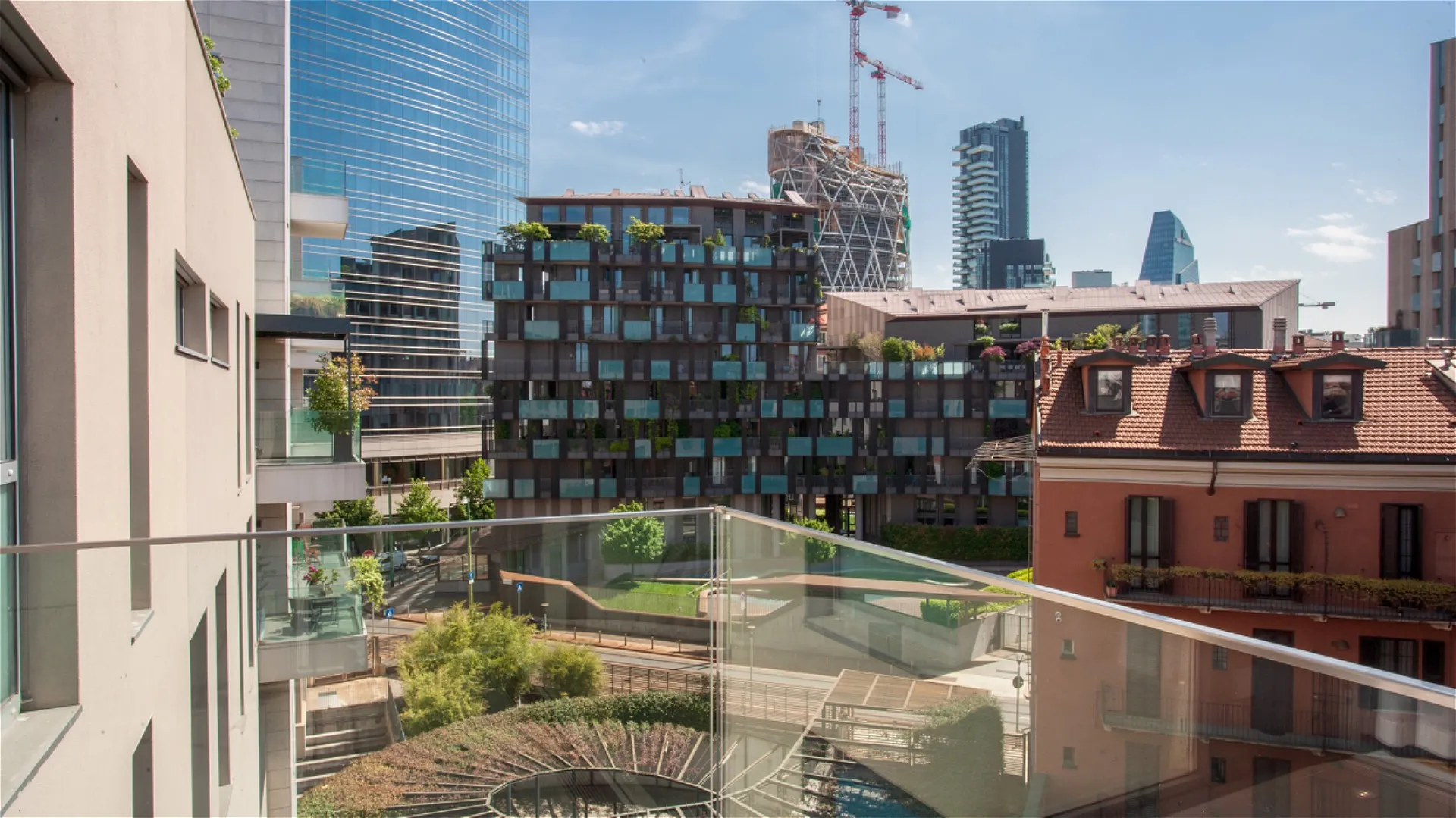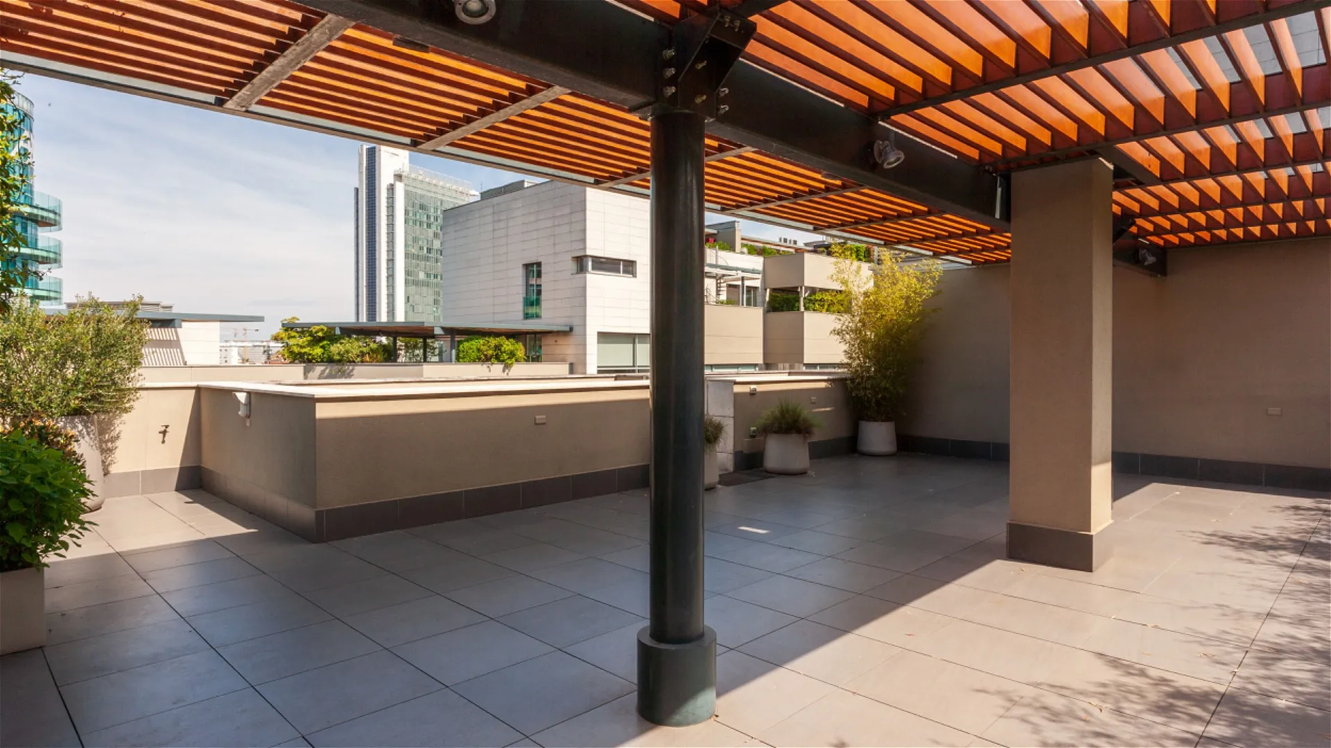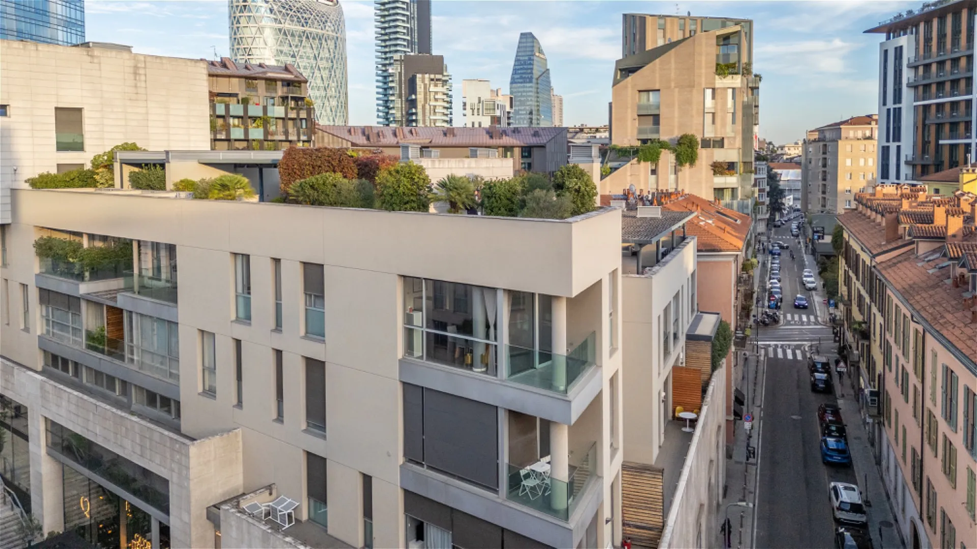 On the third and fourth floors of a modern building between Corso Como and Piazza Gae Aulenti the residence opens onto a bright living area with living room, embellished with double access to the terrace; the kitchen, habitable, stands out for its contemporary design and the perfect integration between aesthetics and functionality. On the same floor there is the sleeping area with master bedroom (with private bathroom), two other bedrooms and a second bathroom. The jewel in the crown of the residence is the fantastic terrace that can be reached on the upper floor, an outdoor area of over 200 m2 that covers the entire surface of the attic. Fine parquet floors and marble coverings in the bathrooms testify to the search for refined finishes. The property is completed by the cellar and the double garage in width. The property is equipped with a ducted cooling system, home automation system with touch screen control station for managing the lights, blackout systems and alarm system. The internal and external safety standard is very high thanks to the door, the video control system of all the common areas and the entrances.