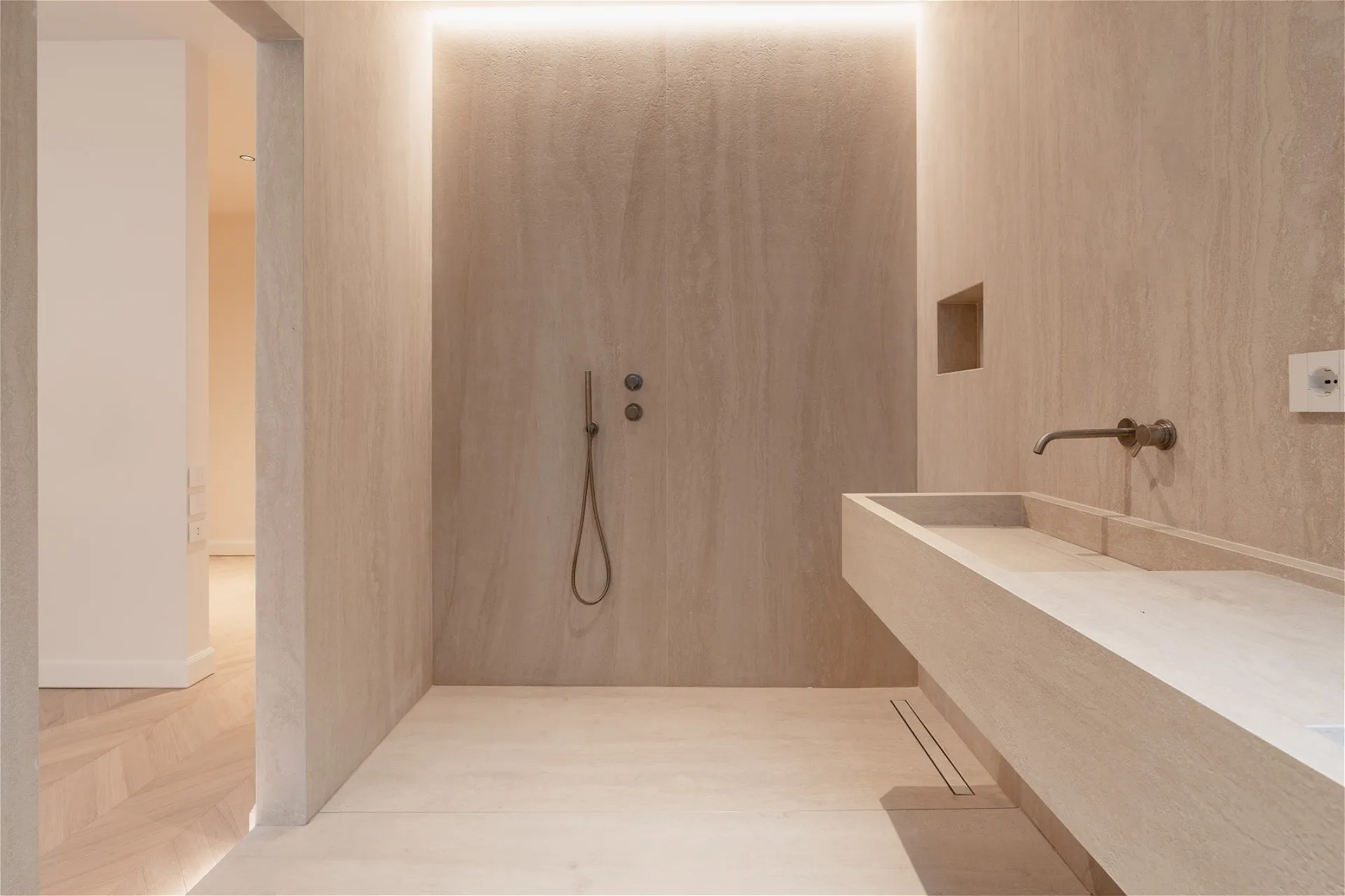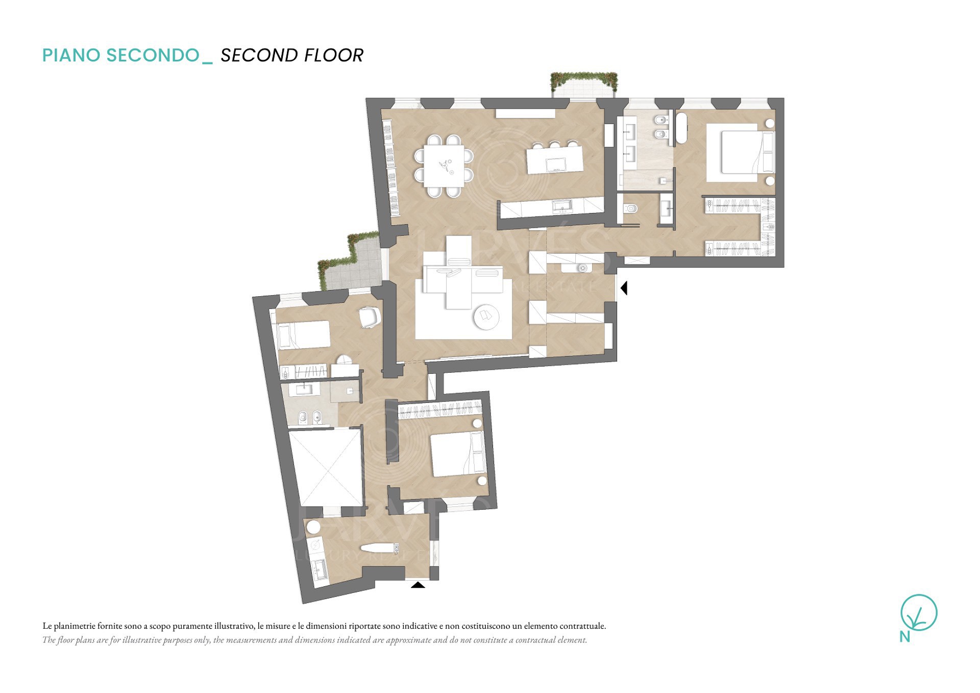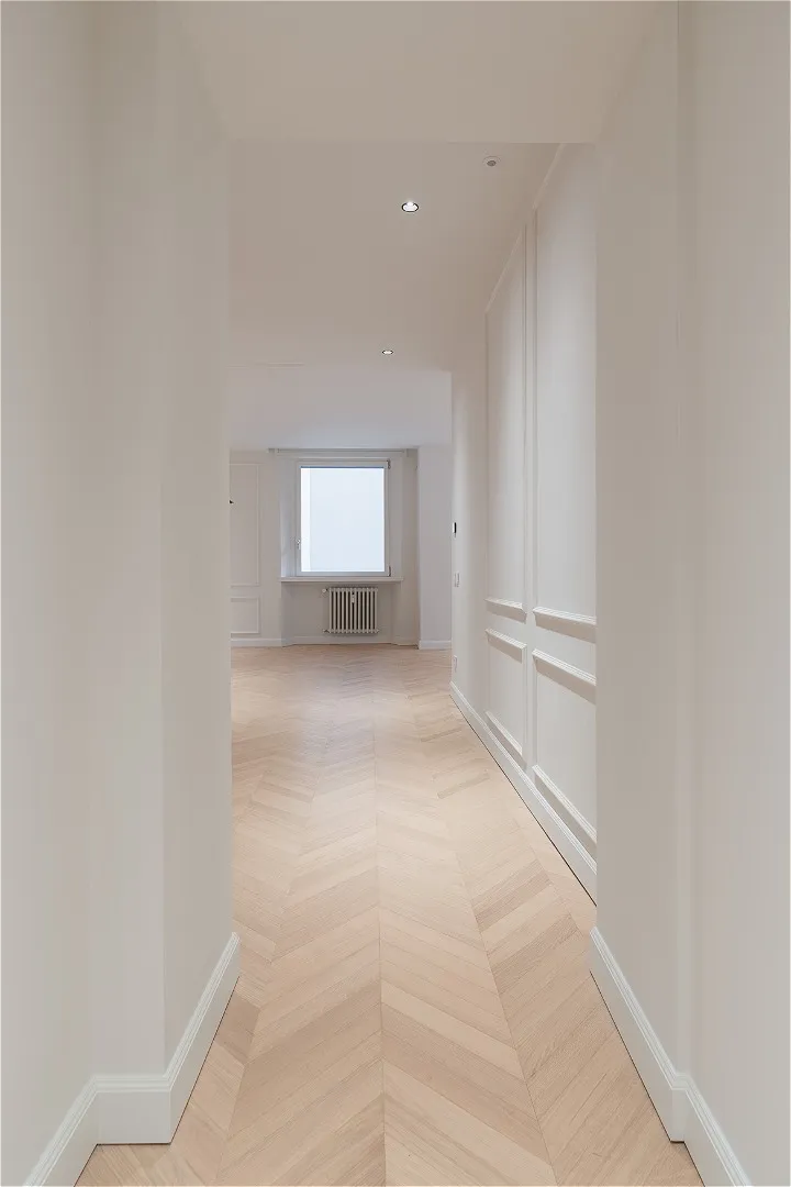 In an elegant building with a white marble facade, this second-floor apartment (with only one other unit on the same level) stands out for its charm and privacy. The entrance is through a marble doorway that leads into a very elegant setting. The residence, set back from the street, has double exposure overlooking two internal courtyards and offers approximately 220 square meters of completely renovated space. The bright and welcoming living area opens onto the living room, dining room, and kitchen overlooking the courtyard; a guest bathroom completes the space. The sleeping area comprises three bedrooms: the master bedroom with walk-in closet and en-suite bathroom clad in travertine-effect stoneware, a full-wall shower cubicle, and double sink; a single bedroom with a small balcony and a double bedroom, served by a shared bathroom, as well as an adjacent laundry room. Oak parquet flooring illuminates the interiors with harmony, combining style and domestic warmth. Double entrance (main and service), heating with cast iron radiators, air conditioning, cellar and concierge service complete the offering and make the property a unique opportunity for those seeking elegance, comfort and tranquility in the heart of Milan.