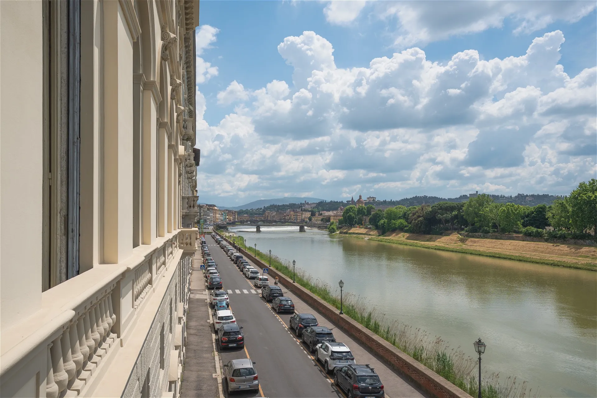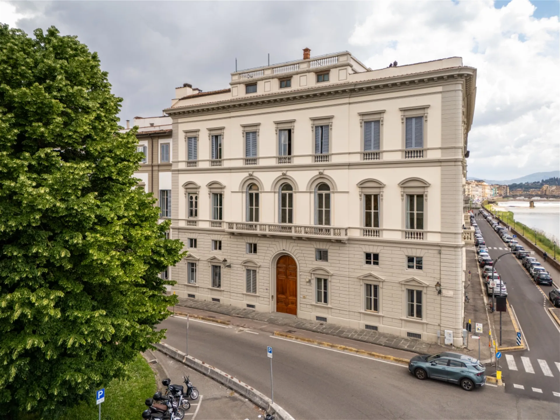 In posizione privilegiata nella città di Firenze, affacciato sull’Arno, un’intera ala nobiliare di palazzo (articolato su due livelli) accoglie questo appartamento monumentale, intriso di storia e raffinatezza. L’ingresso si apre su un androne scenografico con colonne in pietra e soffitti affrescati, mentre una maestosa scalinata conduce al primo piano, dove si sviluppa l’intera proprietà in oggetto. I saloni di rappresentanza, con soffitti alti decorati da stucchi e dipinti, sono inondati di luce grazie alle grandi finestre e balconi che affacciano sia sul fiorito cortile interno che sul fiume. Gli spazi (corridoi e raffinate sale) sono ampi e ariosi, pensati per accogliere con eleganza e prestigio. Al piano ammezzato, un appartamento indipendente completa la residenza, ideale come studio, dependance o area privata. Il 50% della proprietà del cortile interno e un raro box auto di generose dimensioni ne arricchiscono il valore. Un tempo dimora del Barone Levi, console di Persia, e successivamente prestigioso showroom e residenza del rinomato architetto e designer fiorentino Marzio Cecchi, l’immobile (ultimamente utilizzato come ufficio) unisce nobiltà e genio creativo in un unicum senza tempo.