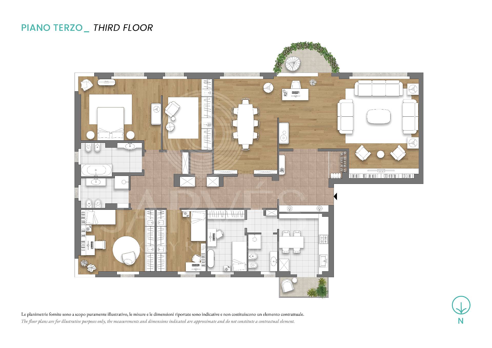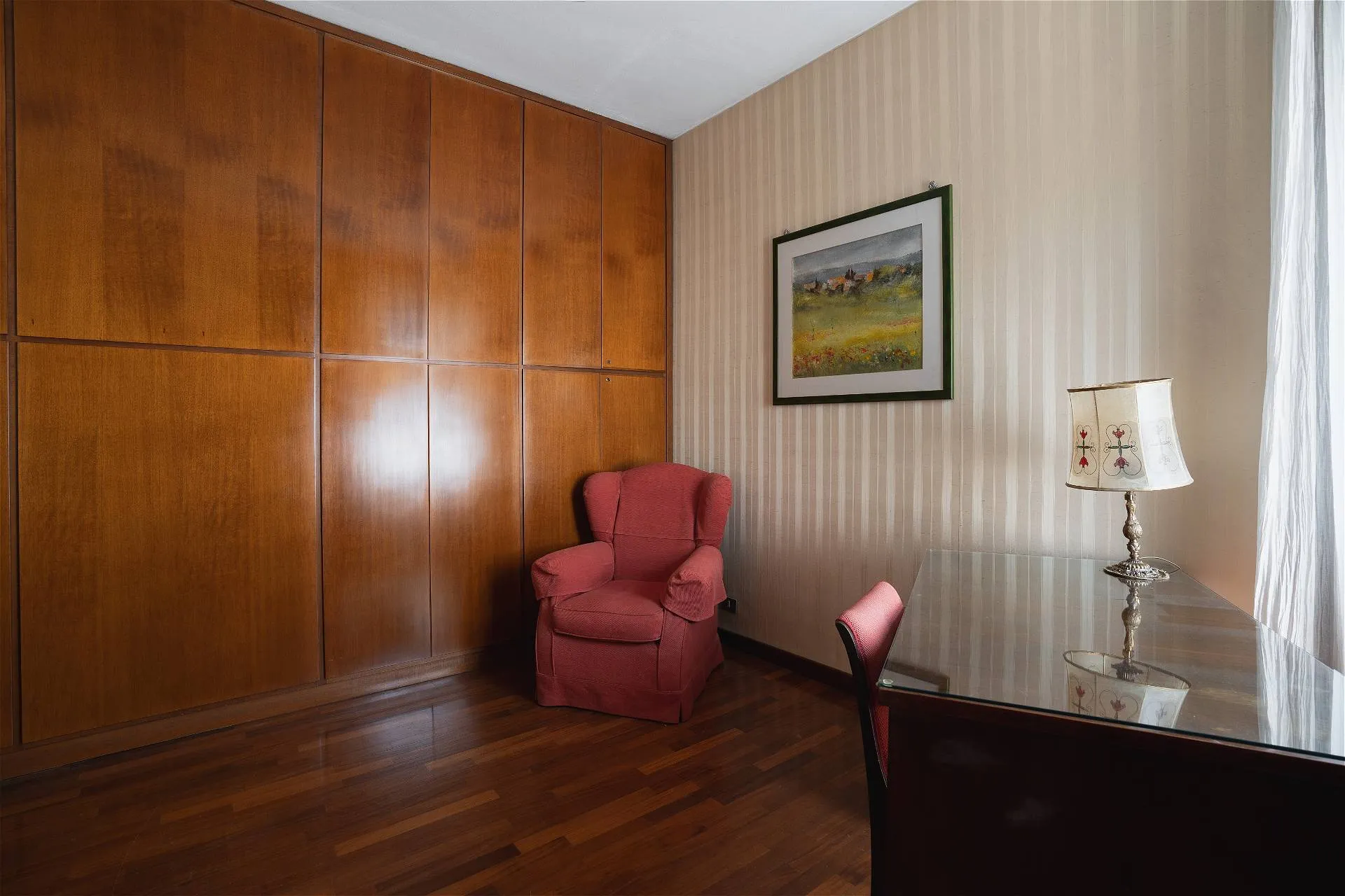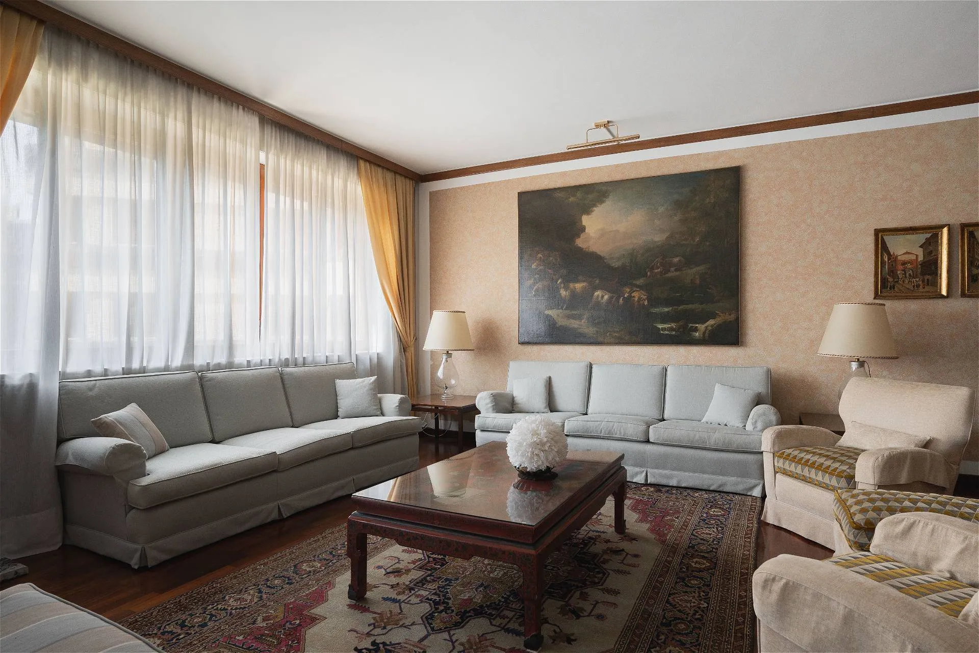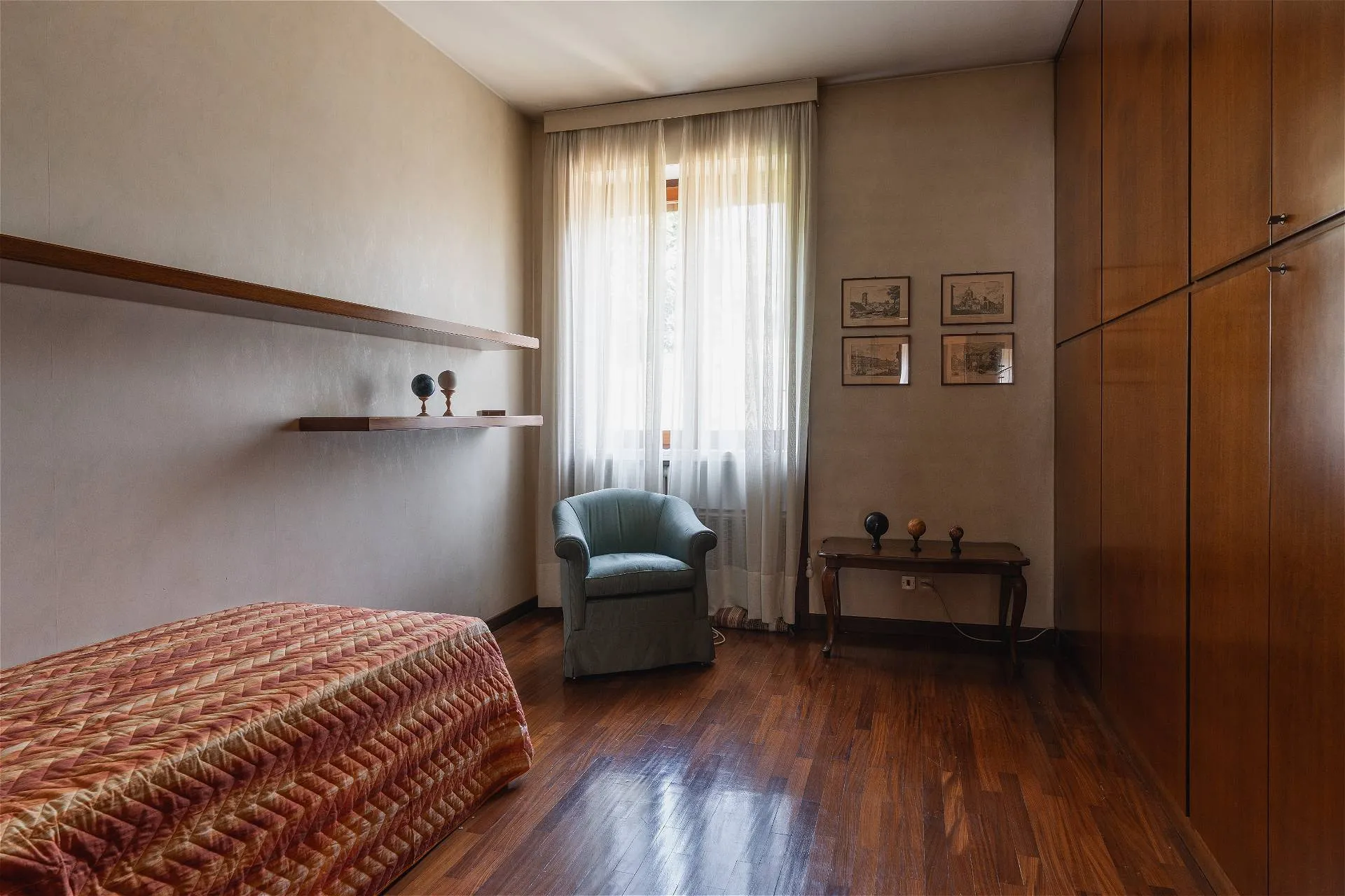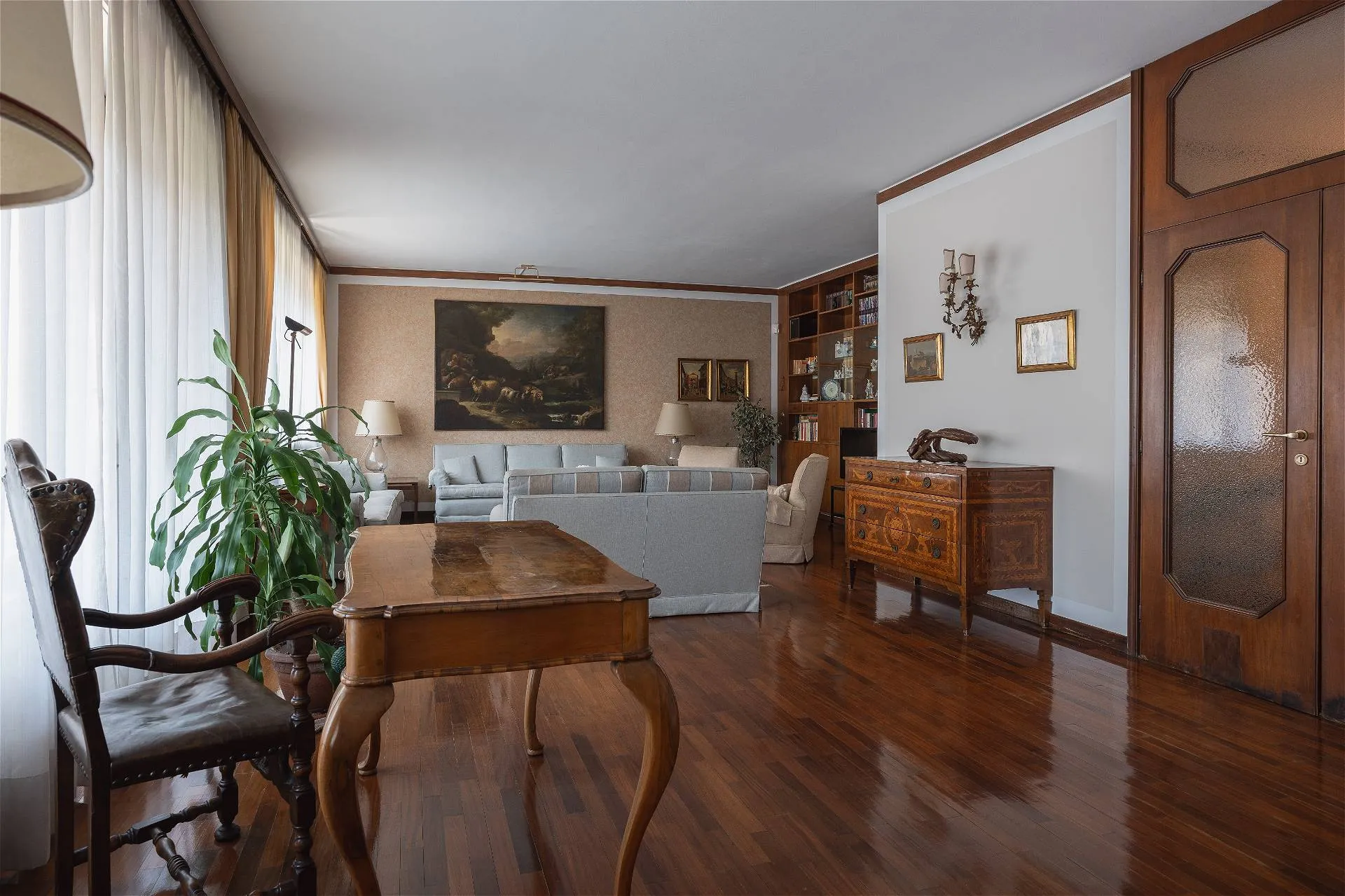 Nel cuore di una delle vie più raffinate di Milano, all’interno di uno stabile signorile, si colloca questo prestigioso appartamento di oltre 200 mq, situato al terzo piano e sviluppato interamente su un unico livello. L’ingresso, ricercato e di ampio respiro, introduce a un percorso abitativo pensato per chi ama lo stile e la comodità. Il living principale luminoso e di generose dimensioni (dal quale si accede anche ad un balcone esterno) prosegue in continuità con un ambiente che può essere dedicato a sala da pranzo. Completa questa sezione della residenza una cucina abitabile con accesso ad un balconcino esterno. Percorrendo il corridoio si giunge alla master bedroom corredata da una cabina armadio e da un bagno privato adiacente. Accanto, trova spazio un ambiente versatile, perfetto come studio o camera, impreziosito da ampie armadiature su misura. Il corridoio conduce con discrezione ad una seconda zona notte, che ospita una spaziosa camera per gli ospiti con servizi dedicati. L’appartamento dispone in totale di 5 camere da letto e 3 bagni, oltre a un ripostiglio, un locale deposito, una cantina e un box auto singolo.