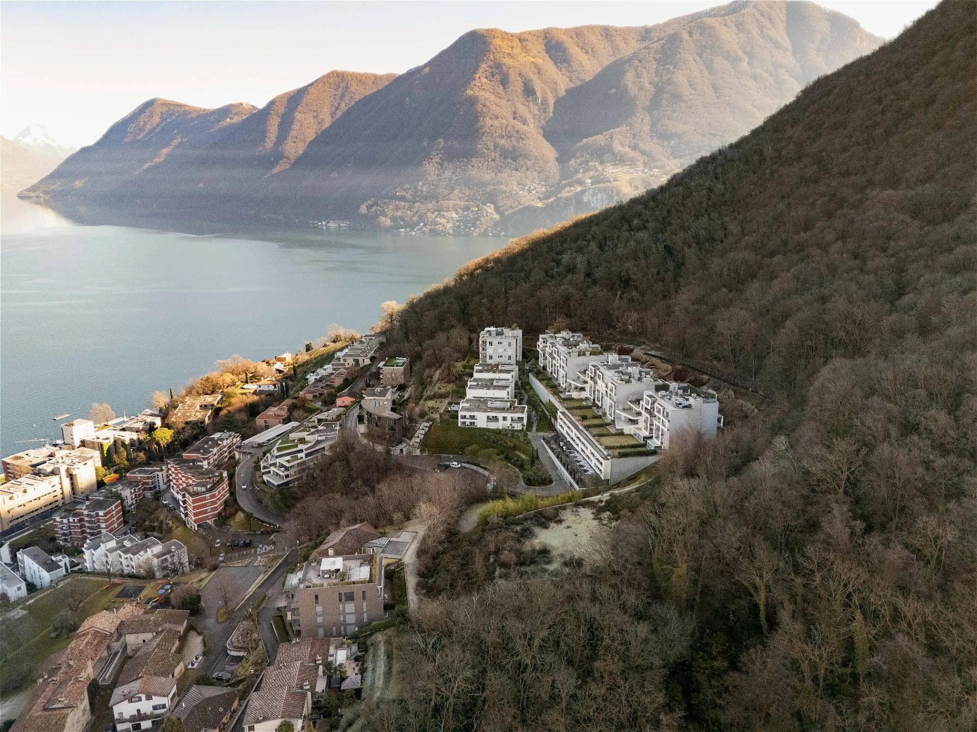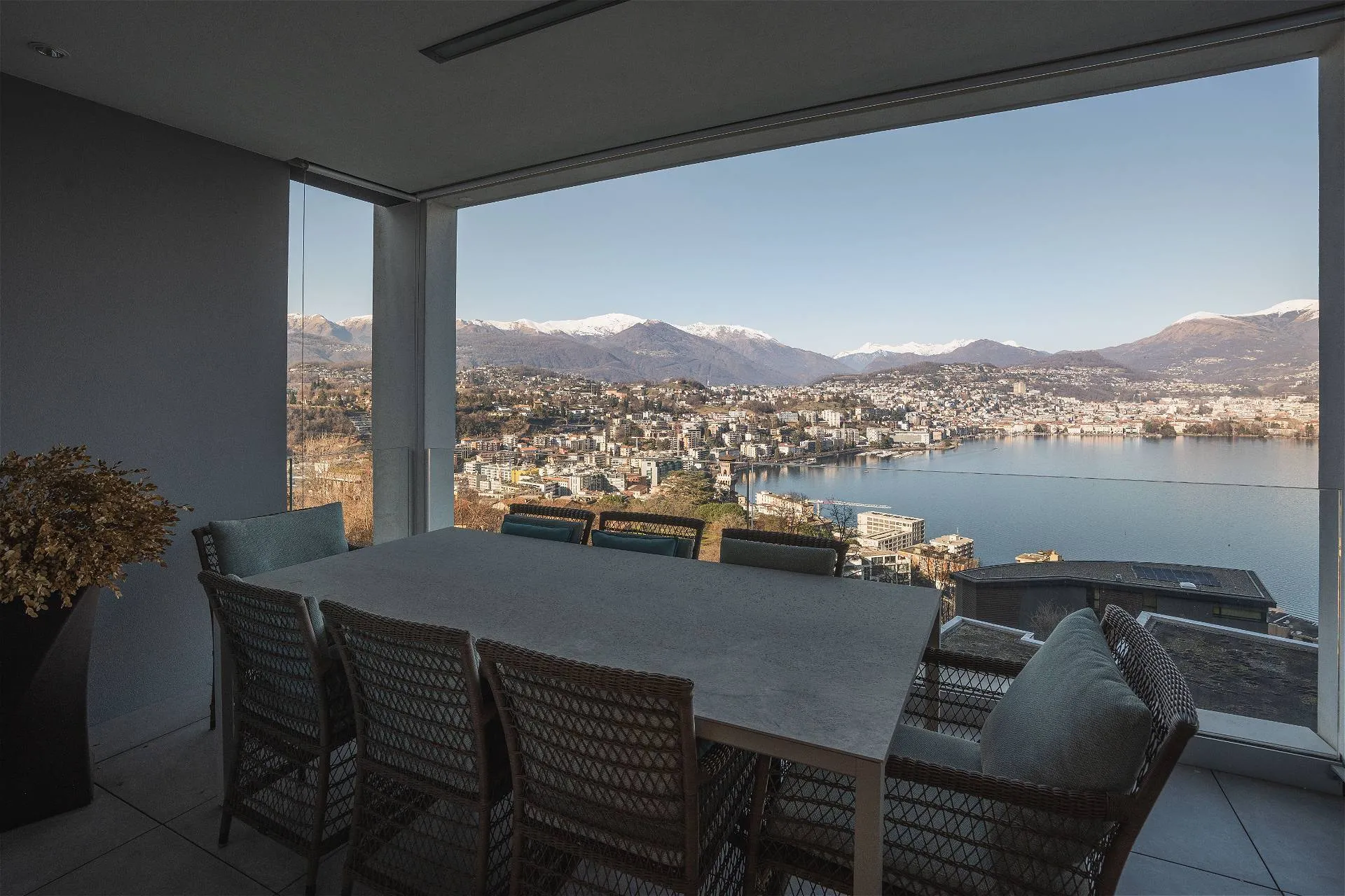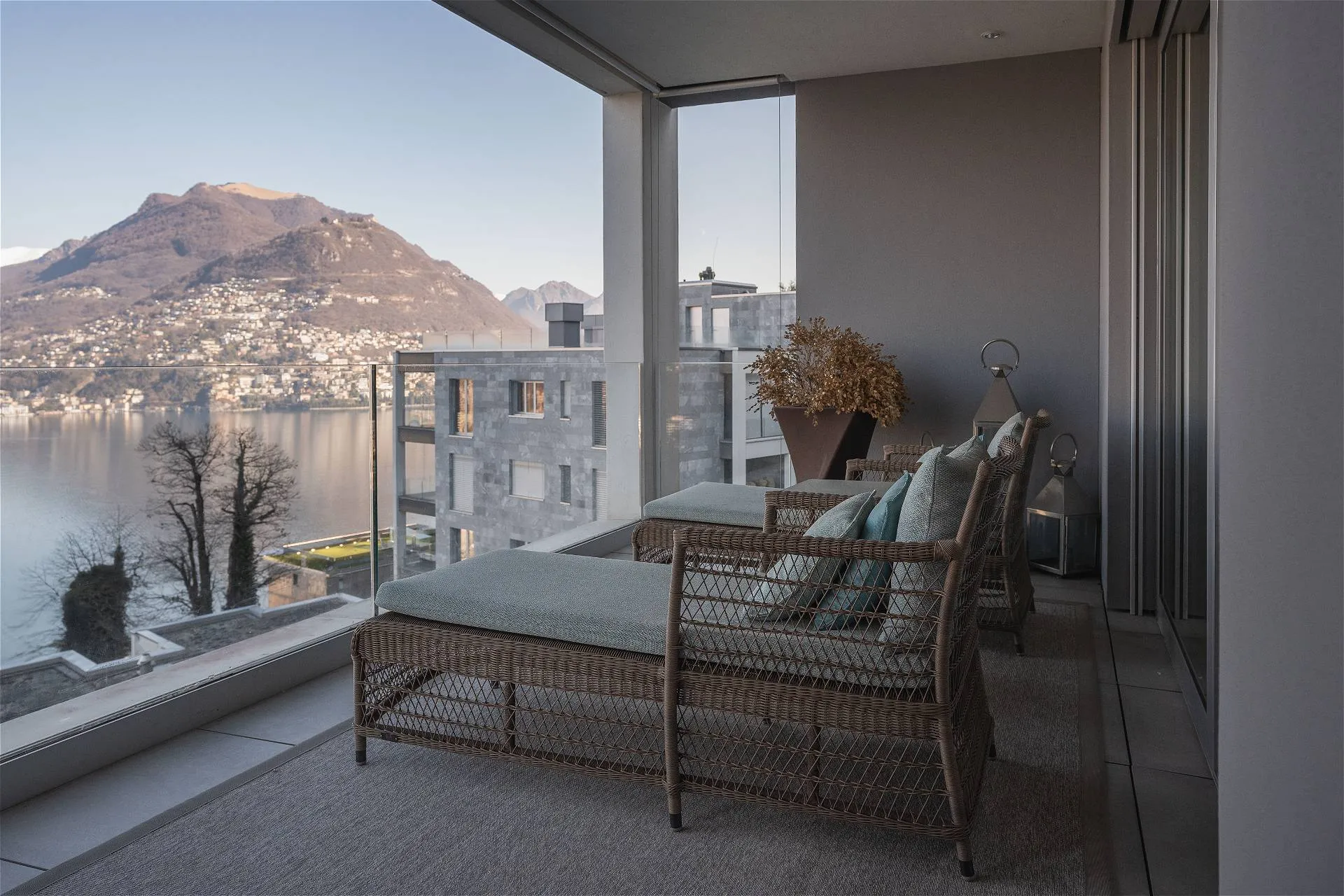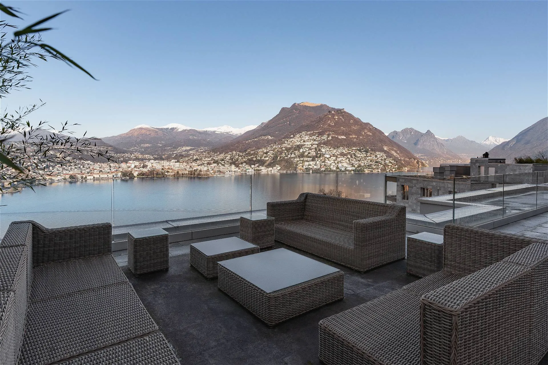 Al quarto ed ultimo piano della residenza Emerald Living si sviluppa un attico, vera oasi di comfort e privacy, che si connota per volumi abitativi di ampio respiro. Un accogliente ingresso conduce a un living con meravigliosa vista lago in continuità con la zona pranzo e la cucina a vista; sullo stesso livello si articolano una suite padronale con cabina armadio e bagno en suite impreziosita da una vasca di design e una terrazza panoramica sul lago; tre camere da letto con bagno privato e terrazze sul bosco circostante la residenza; una quinta camera da letto adattabile in studio con relativa terrazza affacciata sul verde e un ulteriore servizio privato. Moderne geometrie e una sapiente distribuzione degli spazi si combinano con elementi di design e una perfetta luce naturale a comporre un armonico mosaico a garanzia di un ottimo standard abitativo. L’elemento distintivo della residenza è un’esclusiva e ampia terrazza al quinto livello collegata con l’attico per mezzo di un ascensore e di una scala dedicata, dotata di spazi conviviali e caratterizzata da un’ineguagliabile vista su lago, città e montagna. La terrazza finemente attrezzata di oltre 300 mq invita sia alla convivialità che al puro relax, garantendo riservatezza e tranquillità. La residenza, che vanta materiali e finiture di alta gamma, si completa con un posto auto coperto.