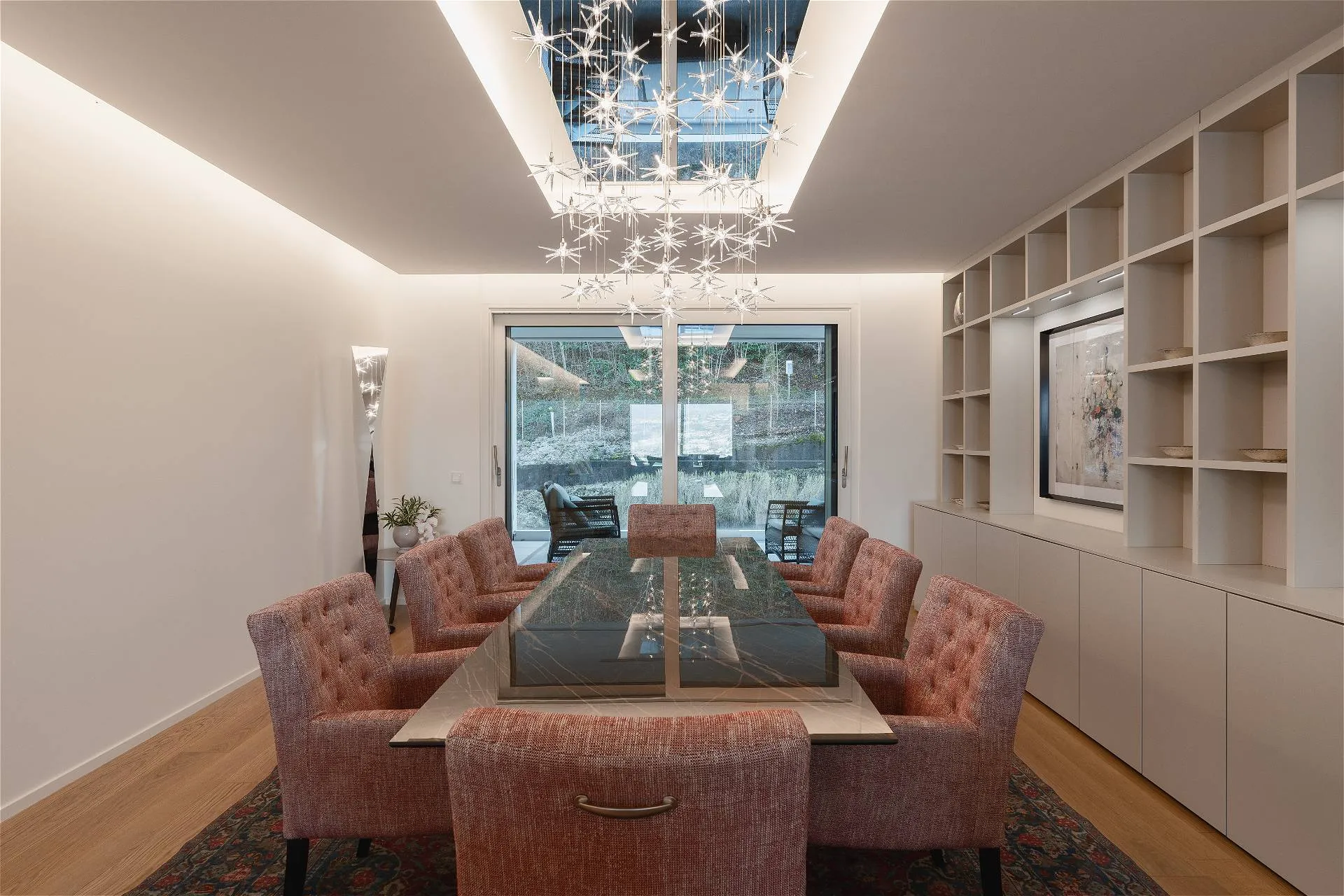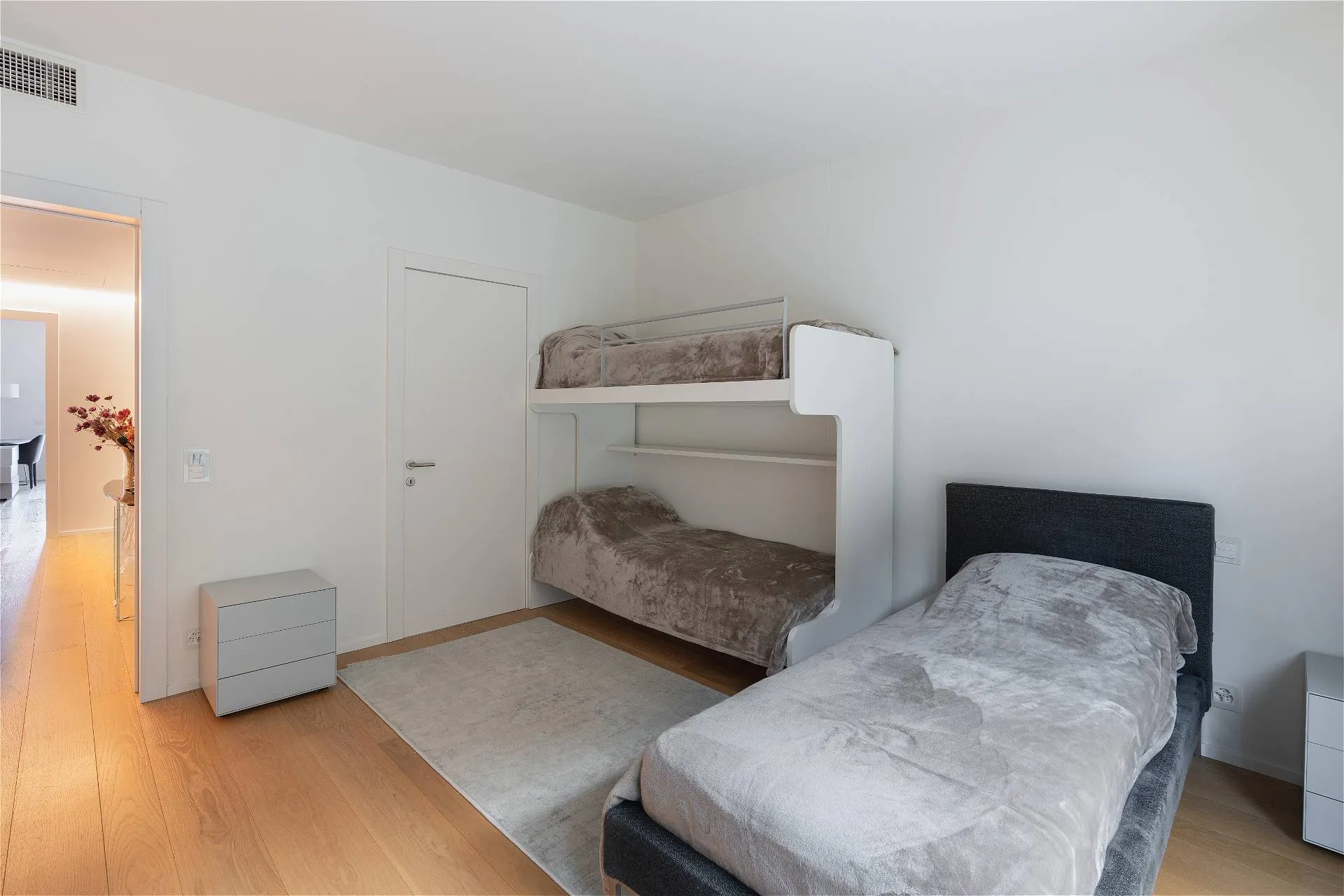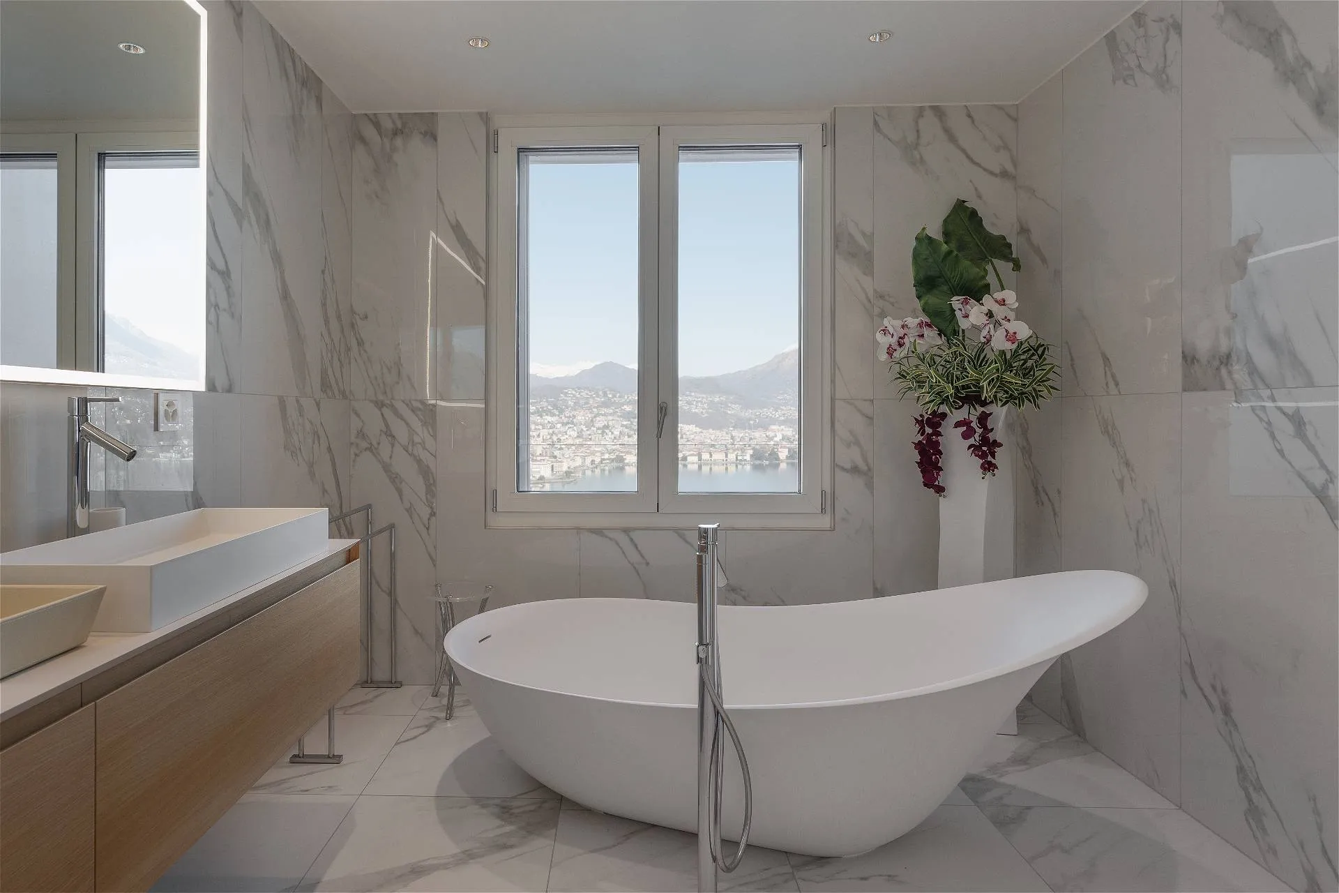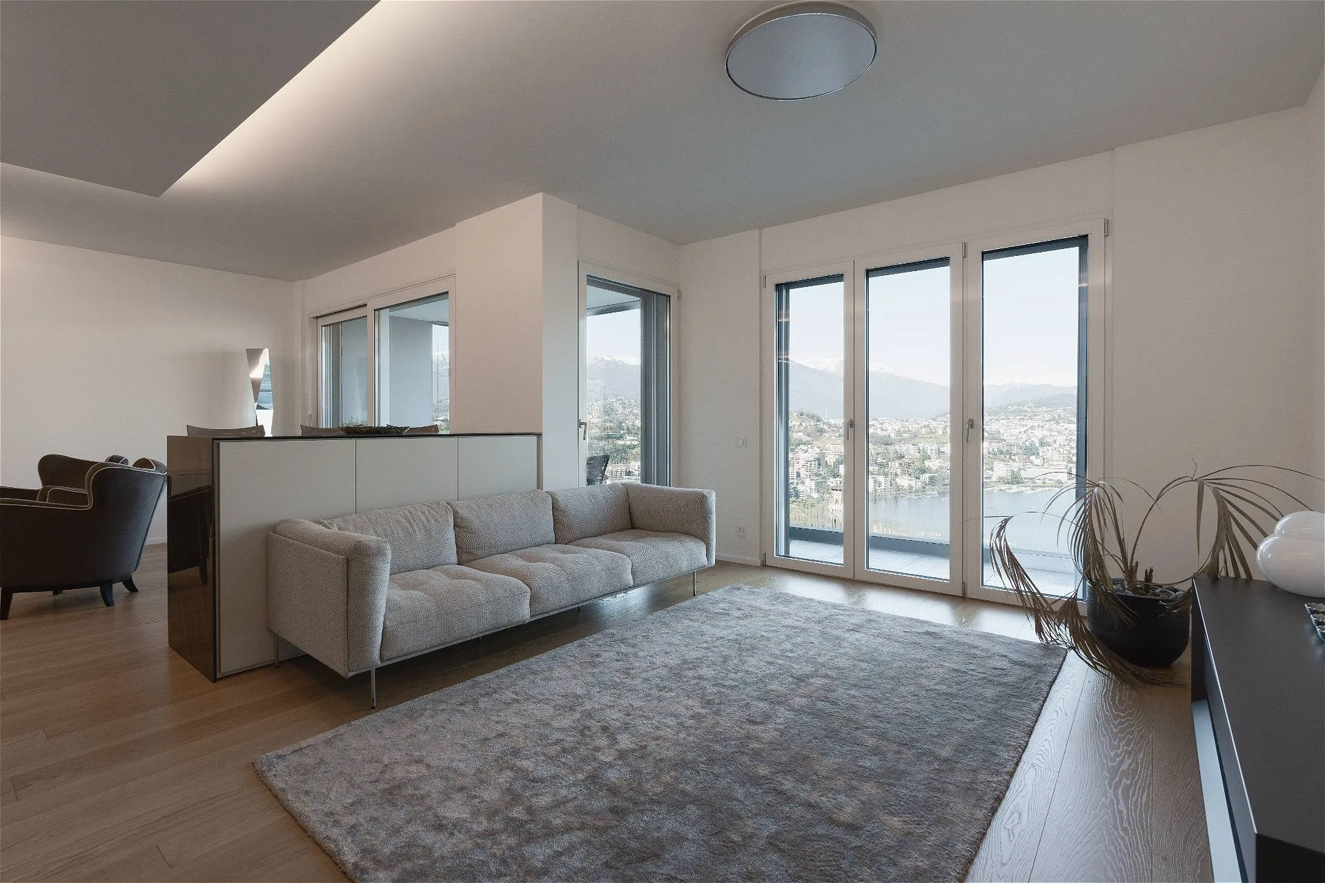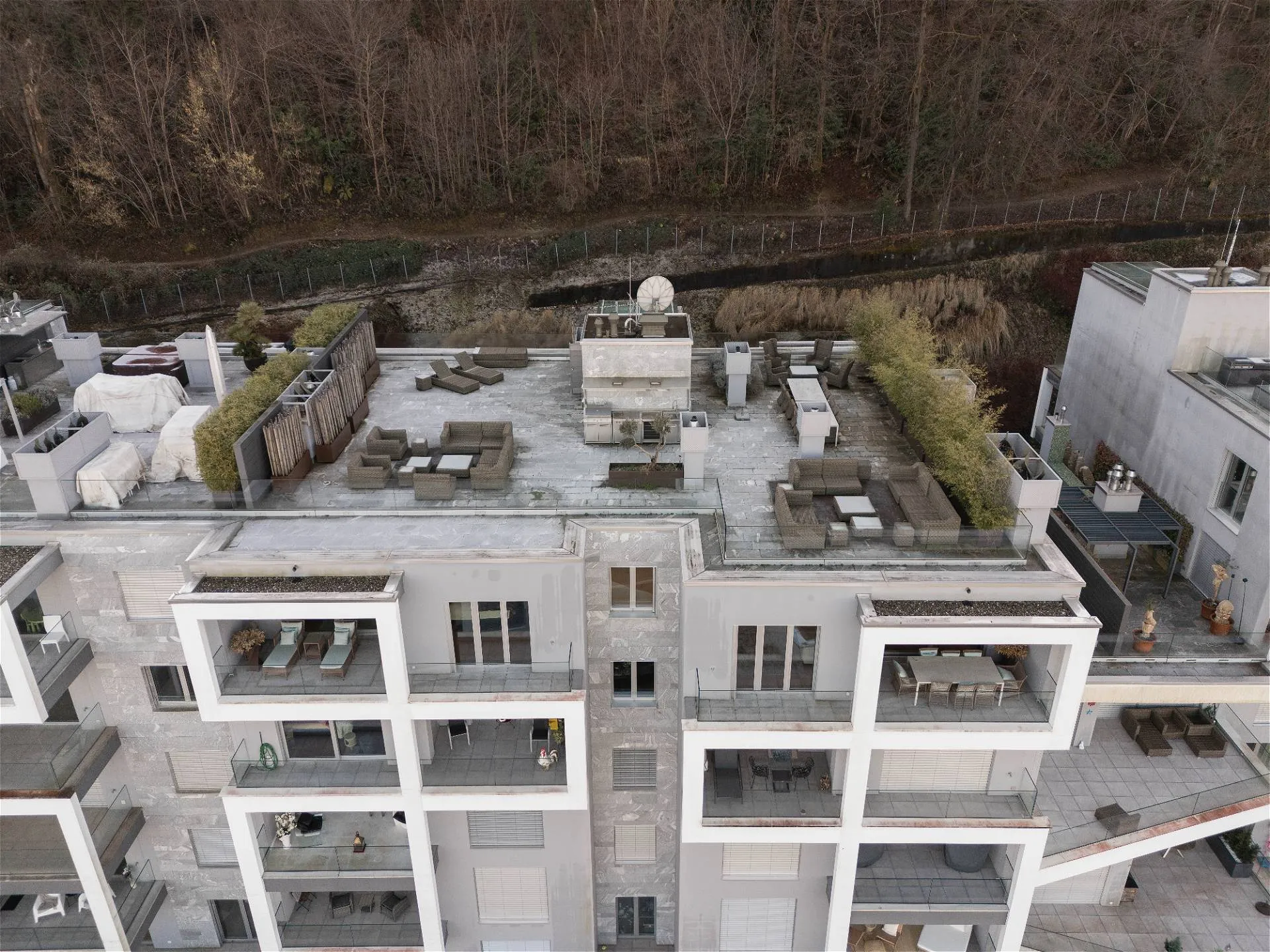 Al quarto ed ultimo piano della residenza Emerald Living si sviluppa un attico, vera oasi di comfort e privacy, che si connota per volumi abitativi di ampio respiro. Un accogliente ingresso conduce a un living con meravigliosa vista lago in continuità con la zona pranzo e la cucina a vista; sullo stesso livello si articolano una suite padronale con cabina armadio e bagno en suite impreziosita da una vasca di design e una terrazza panoramica sul lago; tre camere da letto con bagno privato e terrazze sul bosco circostante la residenza; una quinta camera da letto adattabile in studio con relativa terrazza affacciata sul verde e un ulteriore servizio privato. Moderne geometrie e una sapiente distribuzione degli spazi si combinano con elementi di design e una perfetta luce naturale a comporre un armonico mosaico a garanzia di un ottimo standard abitativo. L’elemento distintivo della residenza è un’esclusiva e ampia terrazza al quinto livello collegata con l’attico per mezzo di un ascensore e di una scala dedicata, dotata di spazi conviviali e caratterizzata da un’ineguagliabile vista su lago, città e montagna. La terrazza finemente attrezzata di oltre 300 mq invita sia alla convivialità che al puro relax, garantendo riservatezza e tranquillità. La residenza, che vanta materiali e finiture di alta gamma, si completa con un posto auto coperto.