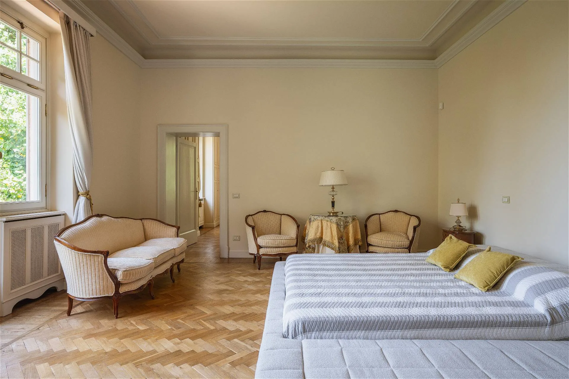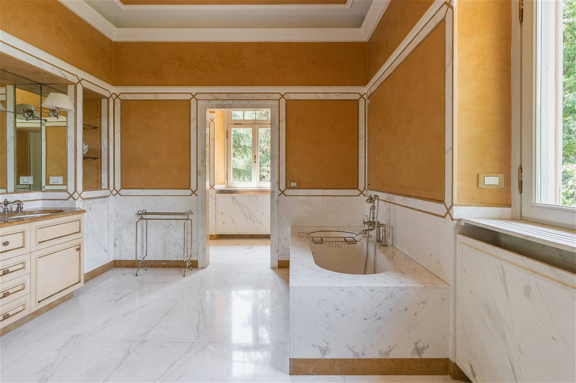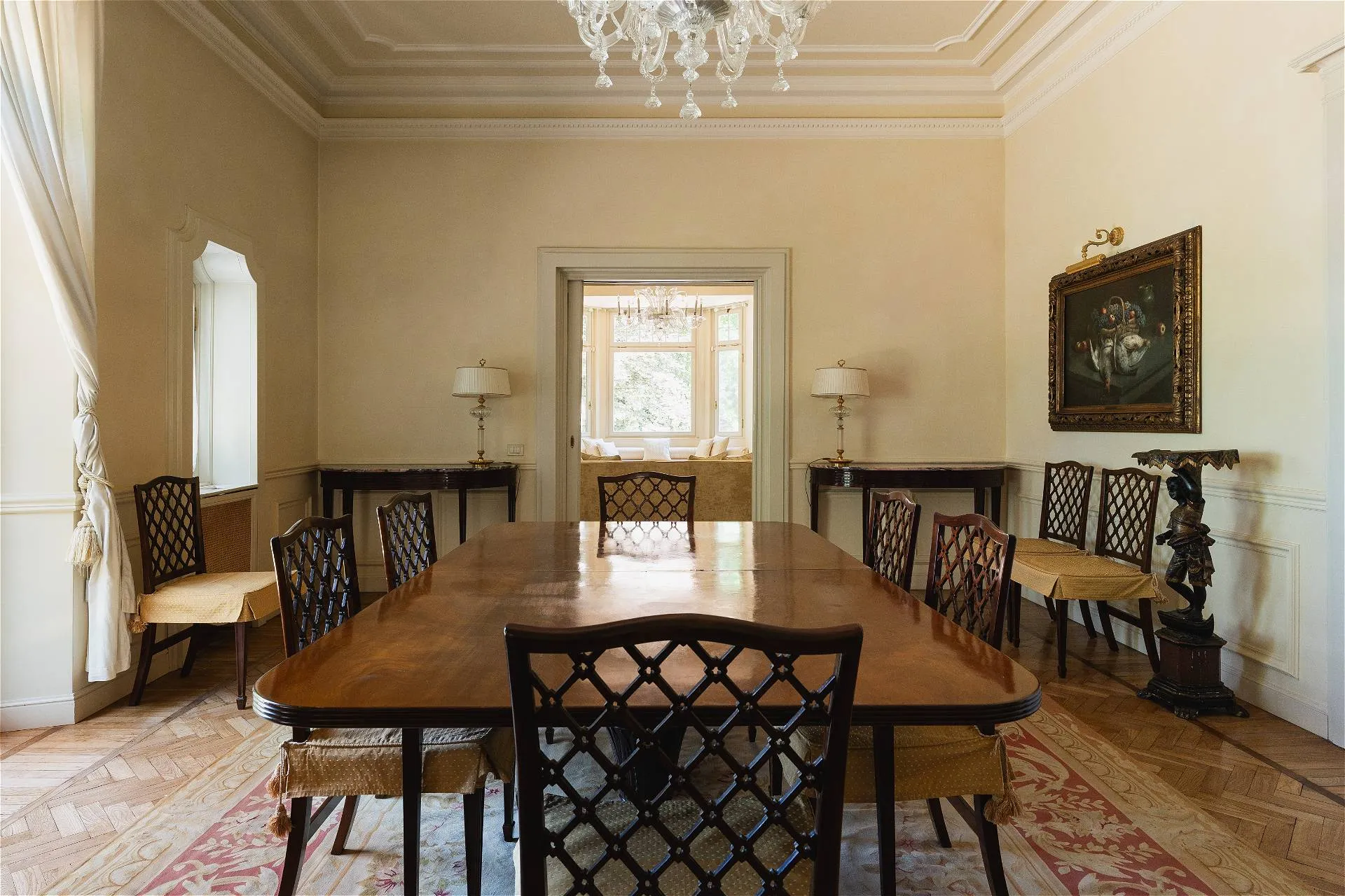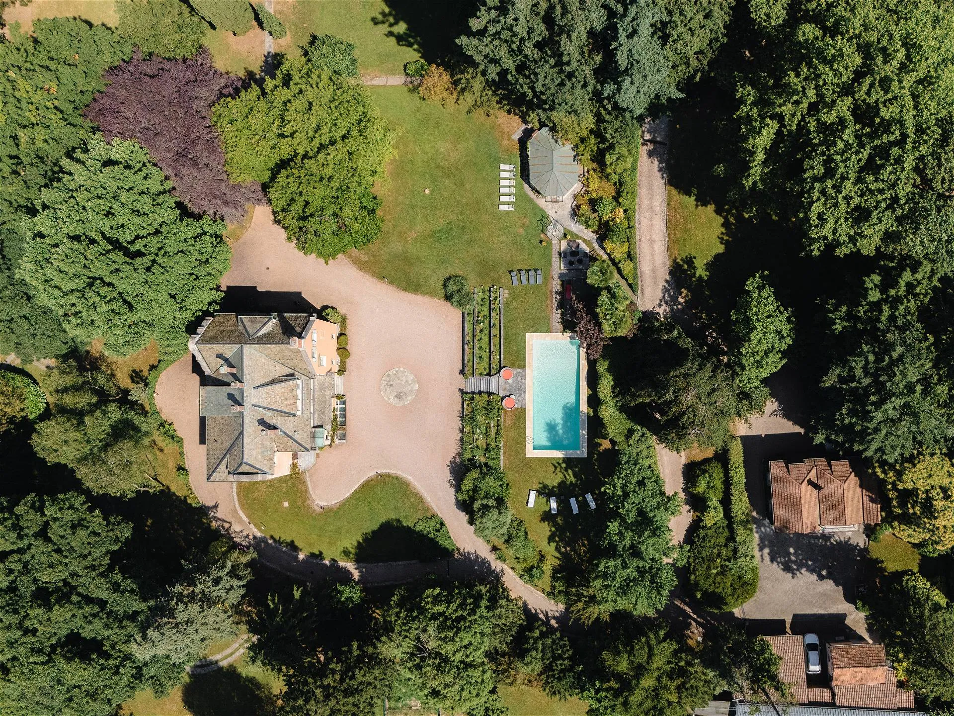 Varese è il contesto in cui si integra questa esclusiva proprietà, costruita nel 1912, armoniosamente avvolta da un parco privato di circa 18.000 mq e immersa in una delle zone residenziali più ricercate ed esclusive della città. A pochi minuti dal centro cittadino, in posizione tranquilla e privilegiata, questa villa raffinata gode della vicinanza (meno di 4 km) del Lago di Varese - specchio d’acqua dal ricco ecosistema e incorniciato da borghi e ville storiche. La residenza di via dei Campigli racconta il fascino di un territorio che, già nell’Ottocento, incantava l’aristocrazia milanese con le sue dimore liberty e i suoi giardini all’italiana. La proprietà, immersa in un’autentica oasi di pace, dove la natura avvolge ogni prospettiva con discrezione e bellezza, gode di una posizione strategica - a meno di un’ora da Milano e a pochi chilometri dalla Svizzera - elemento che la rende ideale per chi cerca equilibrio tra connessioni internazionali e un’oasi di quiete nel verde. La residenza principale si articola su quattro livelli, offrendo ambienti distinti per ogni esigenza. Il piano seminterrato è dedicato alla convivialità e al servizio: include cucina professionale, sala da pranzo, sala cinema con sistema home theatre, cantina vini e un’area riservata al personale con una camera e servizi. Al piano terra, l’ingresso introduce ad un ampio doppio living impreziosito da una finestra a bovindo, collegato alla sala da pranzo con cucina di supporto e a uno studio con camino. Al primo piano si trova la suite padronale con cabina armadio e bagno en suite, affiancata da due camere ospiti con servizi privati. Il secondo piano, mansardato, ospita una seconda suite (con bagno privato), un’area wellness con sauna, Jacuzzi, e un’ampia zona giorno. La proprietà vanta comfort di alto livello: impianto di irrigazione automatico, illuminazione esterna, piscina riscaldata e sauna esterna. La sicurezza è garantita da allarmi perimetrali e videosorveglianza. Completano il tutto: villa del custode (200 mq), due autorimesse, una piccola abitazione indipendente su due livelli, due serre, una scuderia con aree deposito (100 mq), una tettoia con spazio per due auto e una pool house con locale tecnico.