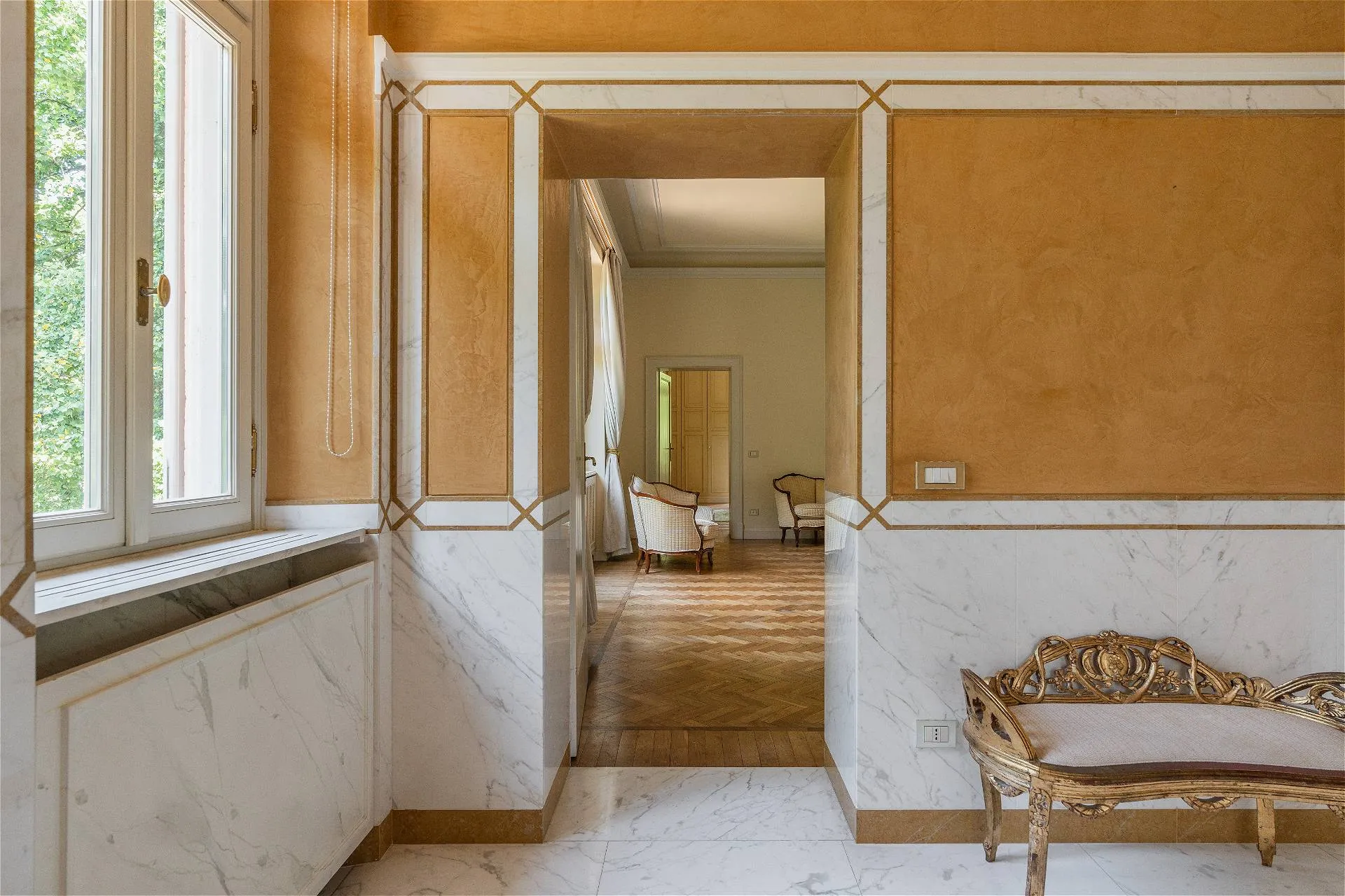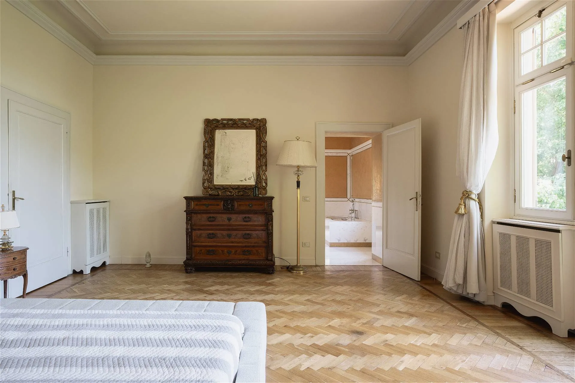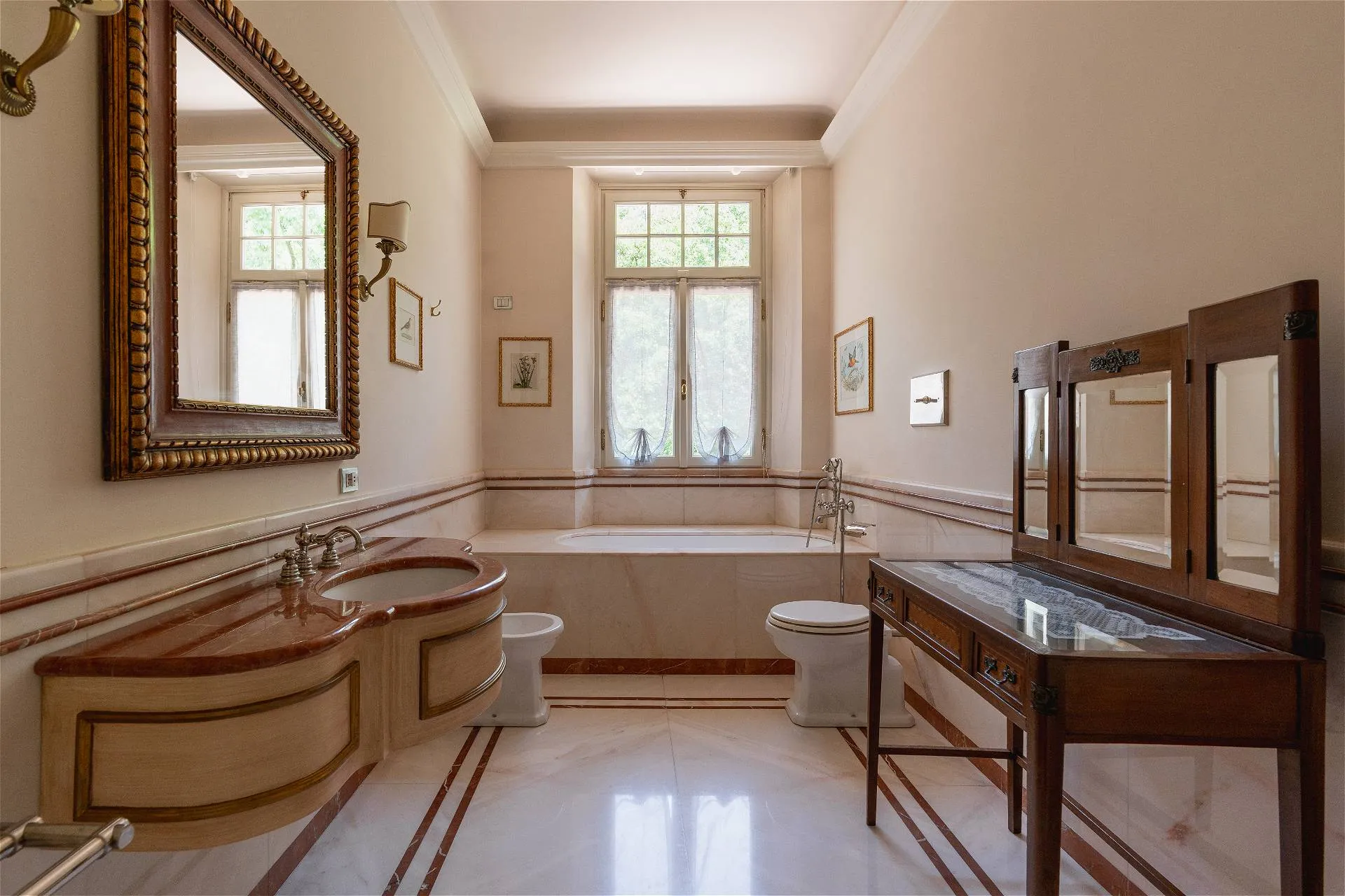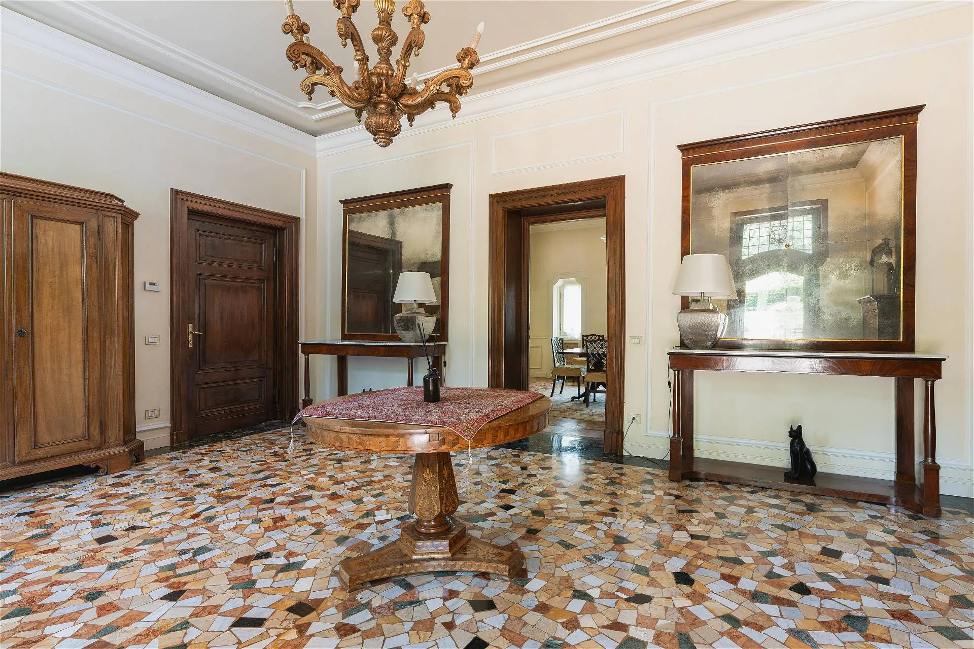 Varese è il contesto in cui si integra questa esclusiva proprietà, costruita nel 1912, armoniosamente avvolta da un parco privato di circa 18.000 mq e immersa in una delle zone residenziali più ricercate ed esclusive della città. A pochi minuti dal centro cittadino, in posizione tranquilla e privilegiata, questa villa raffinata gode della vicinanza (meno di 4 km) del Lago di Varese - specchio d’acqua dal ricco ecosistema e incorniciato da borghi e ville storiche. La residenza di via dei Campigli racconta il fascino di un territorio che, già nell’Ottocento, incantava l’aristocrazia milanese con le sue dimore liberty e i suoi giardini all’italiana. La proprietà, immersa in un’autentica oasi di pace, dove la natura avvolge ogni prospettiva con discrezione e bellezza, gode di una posizione strategica - a meno di un’ora da Milano e a pochi chilometri dalla Svizzera - elemento che la rende ideale per chi cerca equilibrio tra connessioni internazionali e un’oasi di quiete nel verde. La residenza principale si articola su quattro livelli, offrendo ambienti distinti per ogni esigenza. Il piano seminterrato è dedicato alla convivialità e al servizio: include cucina professionale, sala da pranzo, sala cinema con sistema home theatre, cantina vini e un’area riservata al personale con una camera e servizi. Al piano terra, l’ingresso introduce ad un ampio doppio living impreziosito da una finestra a bovindo, collegato alla sala da pranzo con cucina di supporto e a uno studio con camino. Al primo piano si trova la suite padronale con cabina armadio e bagno en suite, affiancata da due camere ospiti con servizi privati. Il secondo piano, mansardato, ospita una seconda suite (con bagno privato), un’area wellness con sauna, Jacuzzi, e un’ampia zona giorno. La proprietà vanta comfort di alto livello: impianto di irrigazione automatico, illuminazione esterna, piscina riscaldata e sauna esterna. La sicurezza è garantita da allarmi perimetrali e videosorveglianza. Completano il tutto: villa del custode (200 mq), due autorimesse, una piccola abitazione indipendente su due livelli, due serre, una scuderia con aree deposito (100 mq), una tettoia con spazio per due auto e una pool house con locale tecnico.