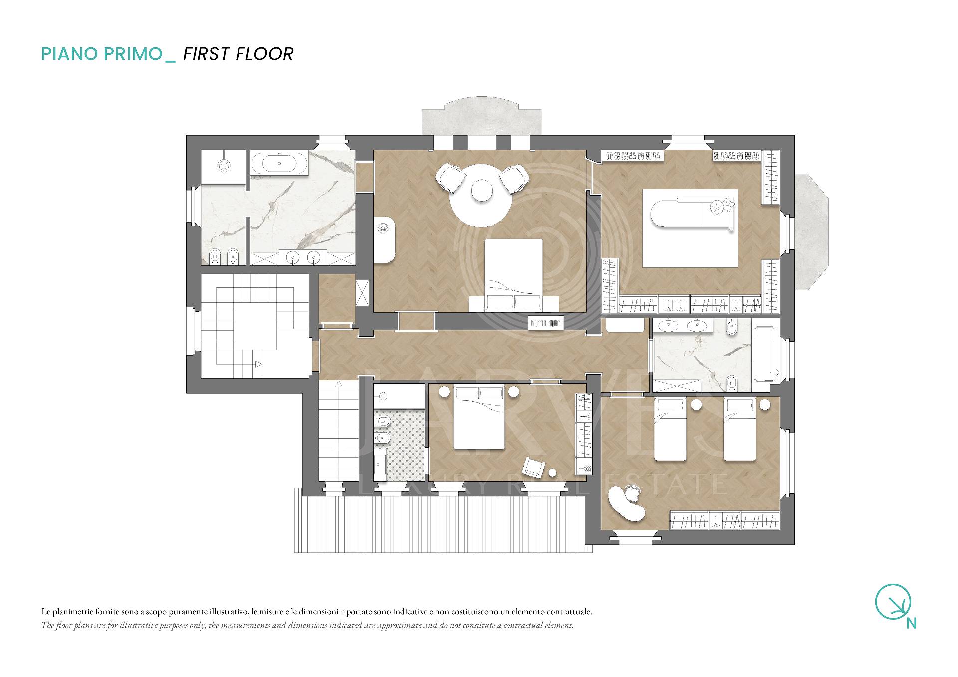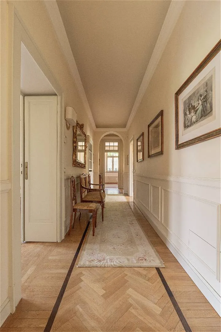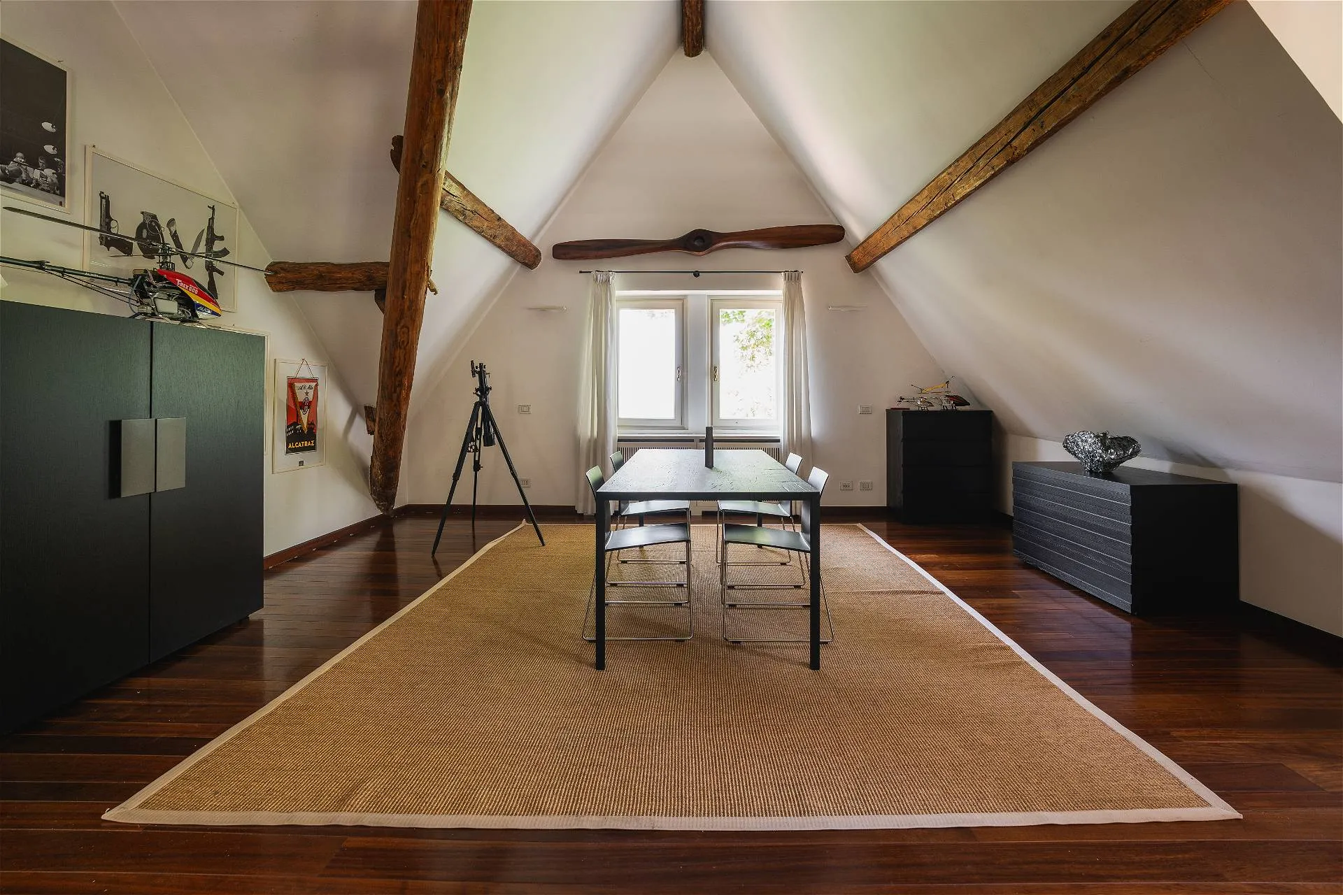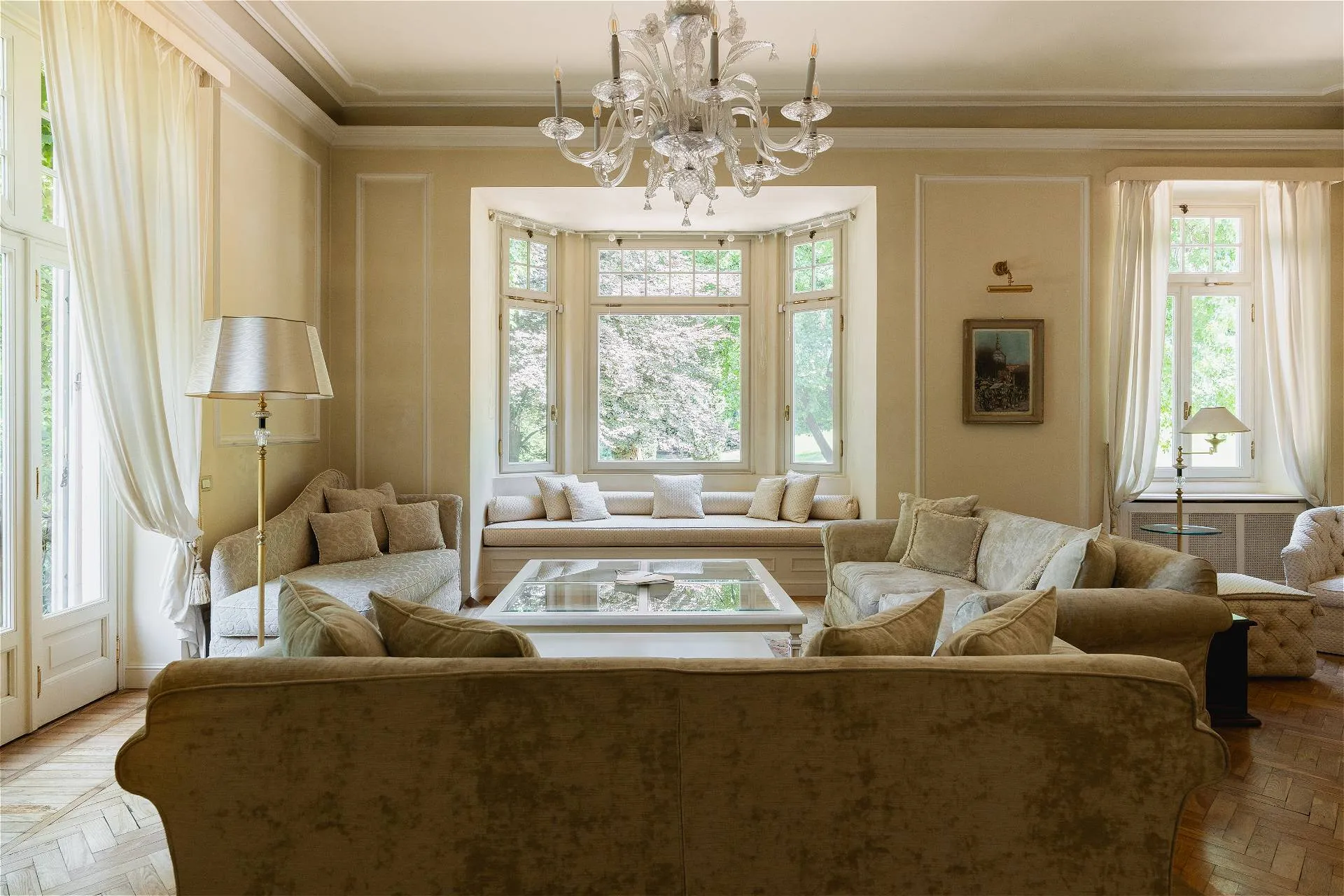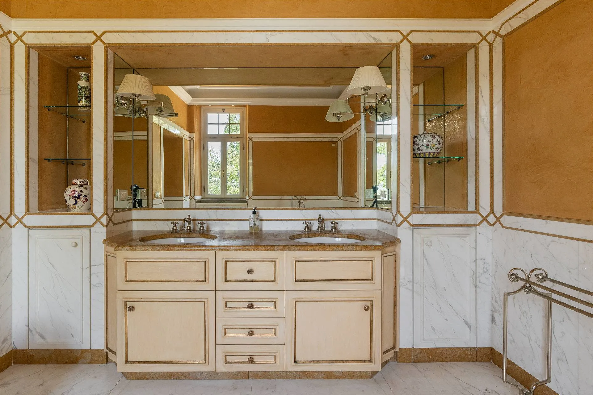Varese è il contesto in cui si integra questa esclusiva proprietà, costruita nel 1912, armoniosamente avvolta da un parco privato di circa 18.000 mq e immersa in una delle zone residenziali più ricercate ed esclusive della città. A pochi minuti dal centro cittadino, in posizione tranquilla e privilegiata, questa villa raffinata gode della vicinanza (meno di 4 km) del Lago di Varese - specchio d’acqua dal ricco ecosistema e incorniciato da borghi e ville storiche. La residenza di via dei Campigli racconta il fascino di un territorio che, già nell’Ottocento, incantava l’aristocrazia milanese con le sue dimore liberty e i suoi giardini all’italiana. La proprietà, immersa in un’autentica oasi di pace, dove la natura avvolge ogni prospettiva con discrezione e bellezza, gode di una posizione strategica - a meno di un’ora da Milano e a pochi chilometri dalla Svizzera - elemento che la rende ideale per chi cerca equilibrio tra connessioni internazionali e un’oasi di quiete nel verde. La residenza principale si articola su quattro livelli, offrendo ambienti distinti per ogni esigenza. Il piano seminterrato è dedicato alla convivialità e al servizio: include cucina professionale, sala da pranzo, sala cinema con sistema home theatre, cantina vini e un’area riservata al personale con una camera e servizi. Al piano terra, l’ingresso introduce ad un ampio doppio living impreziosito da una finestra a bovindo, collegato alla sala da pranzo con cucina di supporto e a uno studio con camino. Al primo piano si trova la suite padronale con cabina armadio e bagno en suite, affiancata da due camere ospiti con servizi privati. Il secondo piano, mansardato, ospita una seconda suite (con bagno privato), un’area wellness con sauna, Jacuzzi, e un’ampia zona giorno. La proprietà vanta comfort di alto livello: impianto di irrigazione automatico, illuminazione esterna, piscina riscaldata e sauna esterna. La sicurezza è garantita da allarmi perimetrali e videosorveglianza. Completano il tutto: villa del custode (200 mq), due autorimesse, una piccola abitazione indipendente su due livelli, due serre, una scuderia con aree deposito (100 mq), una tettoia con spazio per due auto e una pool house con locale tecnico.
