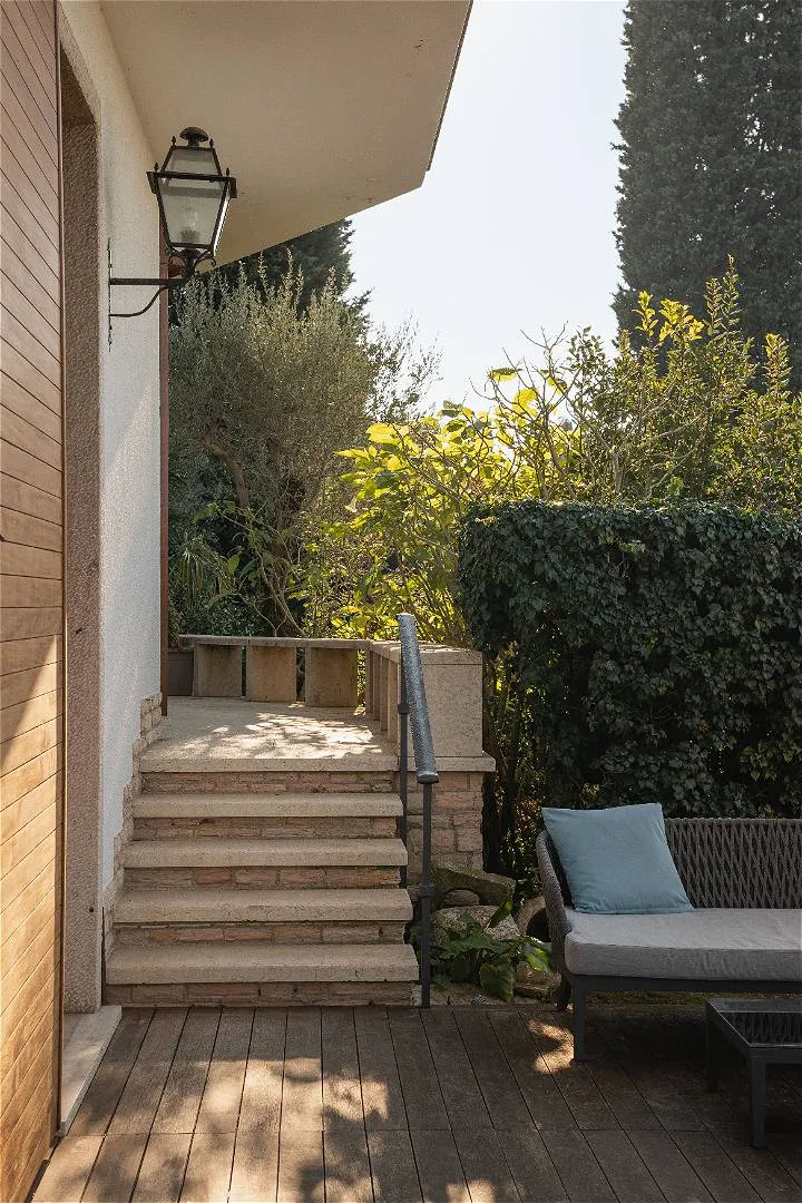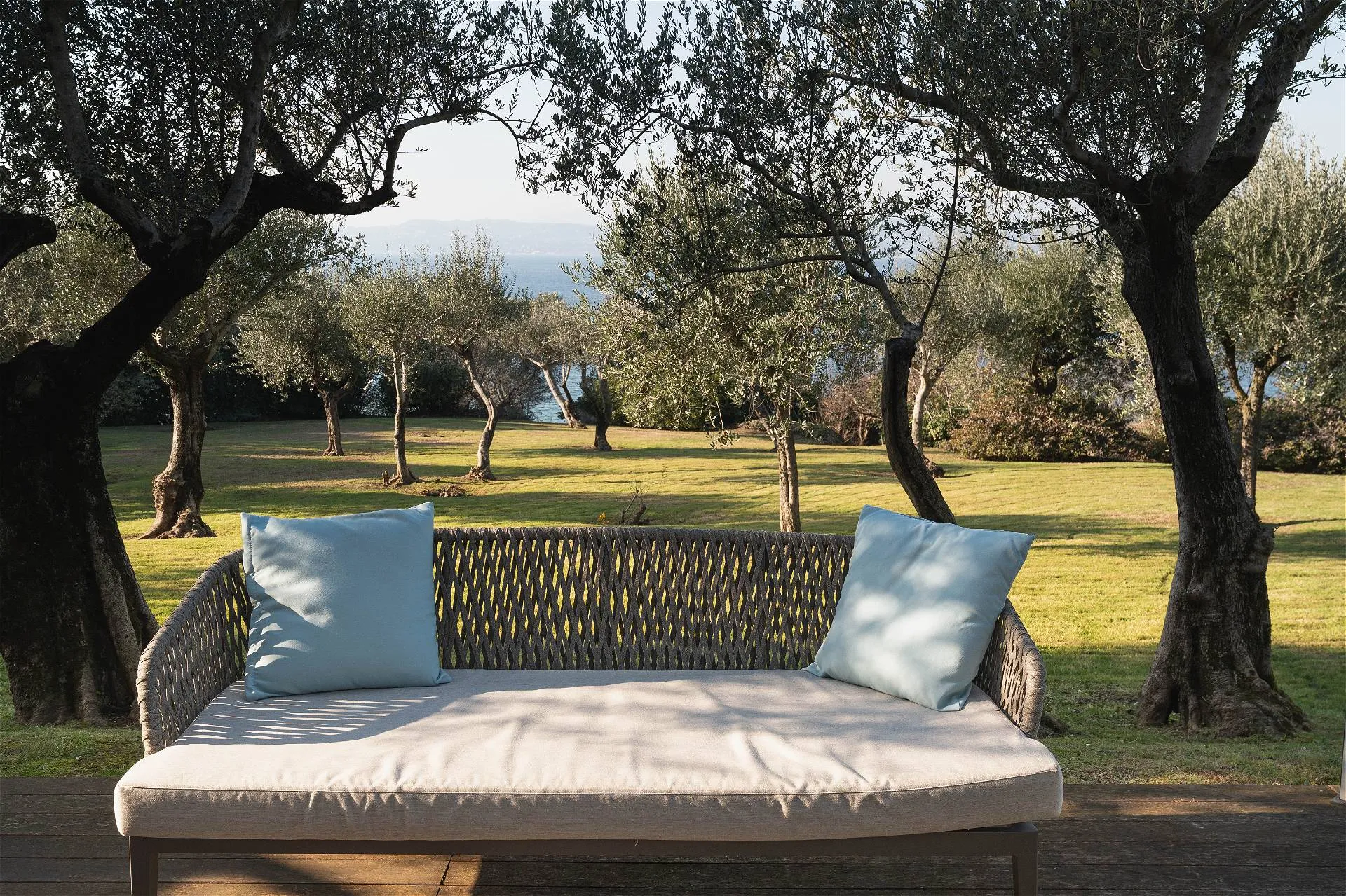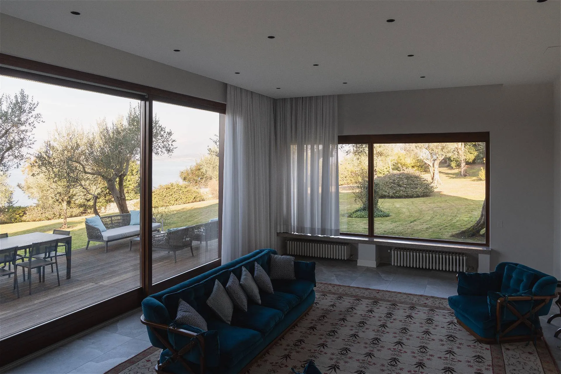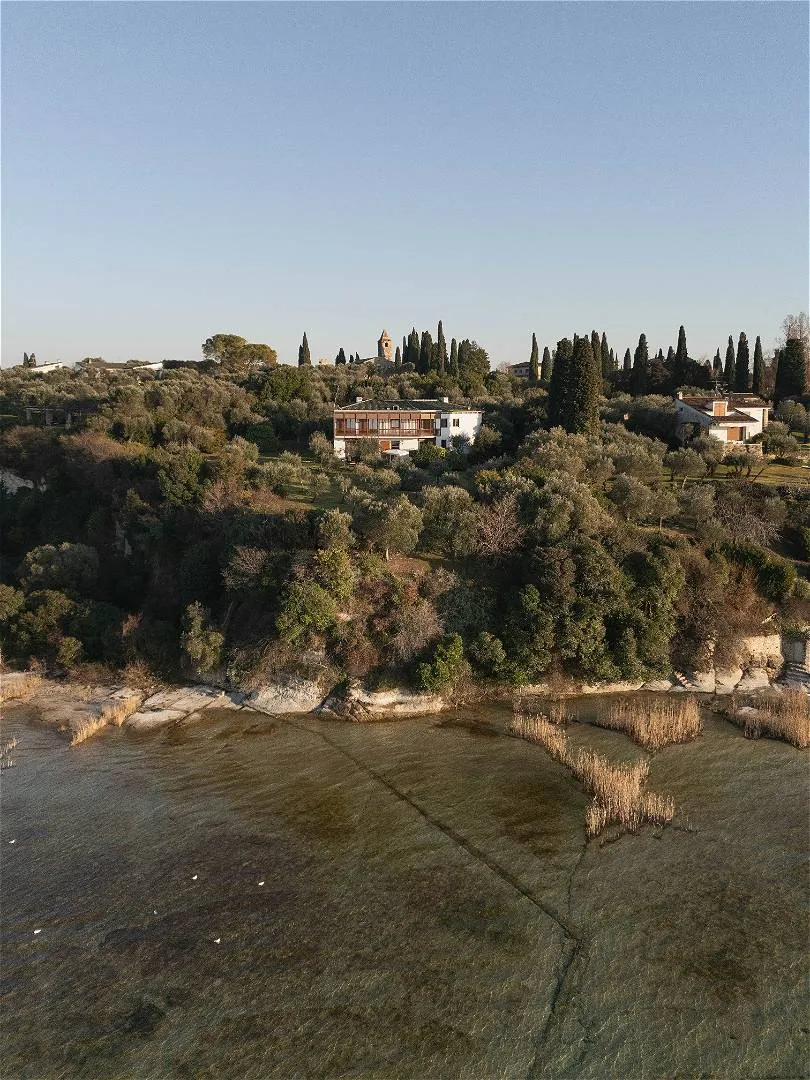 Incorniciata da un grande parco privato arricchito da ulivi ed essenze mediterranee, questa proprietà pied dans l’eau offre un accesso diretto a una spiaggetta esclusiva, raggiungibile tramite una scalinata privata. Ubicata in una zona residenziale riservata, lontana dal flusso turistico, la residenza combina elementi di pregio, tranquillità e fascino storico. La proprietà, completamente ristrutturata nel 2020, si sviluppa in una villa principale e una dependance, immerse in un suggestivo parco impreziosito da ulivi. La villa principale si sviluppa su tre livelli: al piano terra un elegante ingresso introduce al soggiorno con ampie vetrate affacciate sul parco e sul lago; sul medesimo piano si distribuiscono una sala da pranzo, uno studio, una cucina e un bagno. Al primo piano, la zona notte comprende quattro camere da letto, ognuna con bagno privato, e un terrazzo panoramico che regala straordinarie vedute. La proprietà include, inoltre, una dépendance anch’essa recentemente ristrutturata, composta da soggiorno con angolo cottura, due camere, un bagno, una serra, un portico e un garage doppio. Ad impreziosire ulteriormente la residenza è una piscina di generose dimensioni nel giardino tra la villa e la dépendance. Originariamente un terrazzamento di ulivi, questo terreno è diventato una delle ville più esclusive del lago di Garda, grazie alla ristrutturazione che ha sapientemente unito il fascino storico a comfort moderni e alla posizione privilegiata all’estremità nord della penisola.