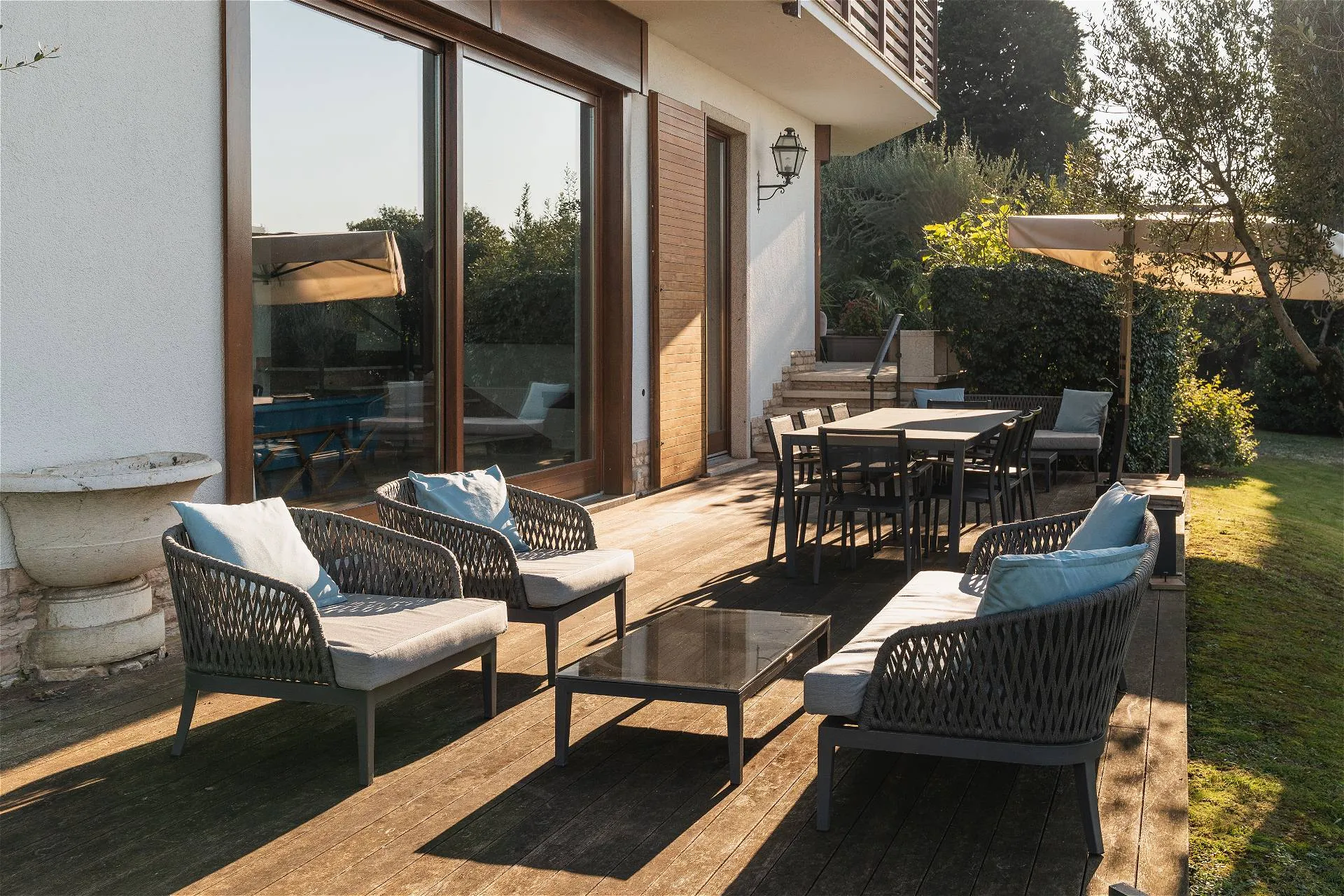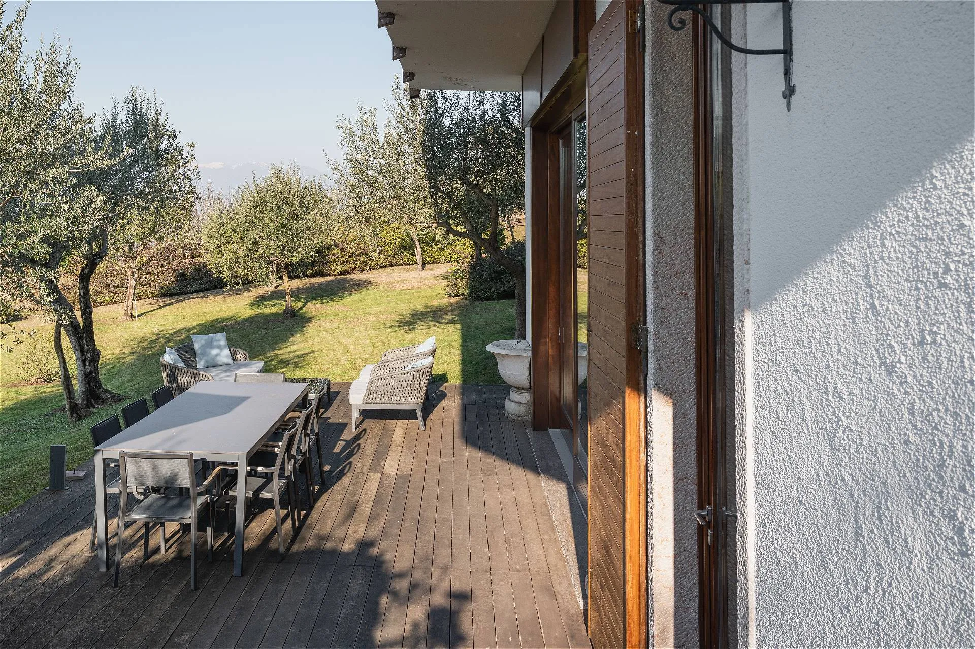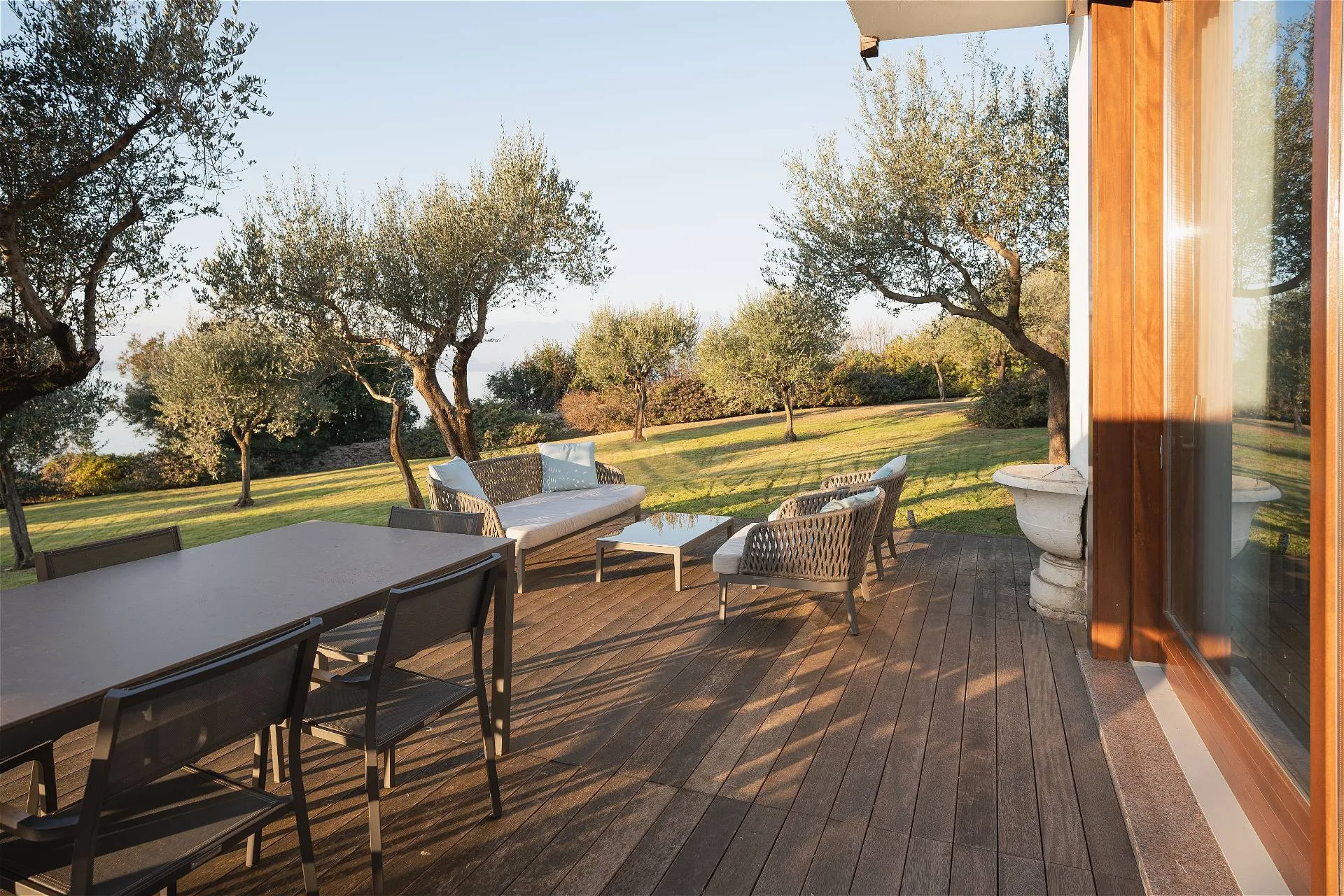 Incorniciata da un grande parco privato arricchito da ulivi ed essenze mediterranee, questa proprietà pied dans l’eau offre un accesso diretto a una spiaggetta esclusiva, raggiungibile tramite una scalinata privata. Ubicata in una zona residenziale riservata, lontana dal flusso turistico, la residenza combina elementi di pregio, tranquillità e fascino storico. La proprietà, completamente ristrutturata nel 2020, si sviluppa in una villa principale e una dependance, immerse in un suggestivo parco impreziosito da ulivi. La villa principale si sviluppa su tre livelli: al piano terra un elegante ingresso introduce al soggiorno con ampie vetrate affacciate sul parco e sul lago; sul medesimo piano si distribuiscono una sala da pranzo, uno studio, una cucina e un bagno. Al primo piano, la zona notte comprende quattro camere da letto, ognuna con bagno privato, e un terrazzo panoramico che regala straordinarie vedute. La proprietà include, inoltre, una dépendance anch’essa recentemente ristrutturata, composta da soggiorno con angolo cottura, due camere, un bagno, una serra, un portico e un garage doppio. Ad impreziosire ulteriormente la residenza è una piscina di generose dimensioni nel giardino tra la villa e la dépendance. Originariamente un terrazzamento di ulivi, questo terreno è diventato una delle ville più esclusive del lago di Garda, grazie alla ristrutturazione che ha sapientemente unito il fascino storico a comfort moderni e alla posizione privilegiata all’estremità nord della penisola.