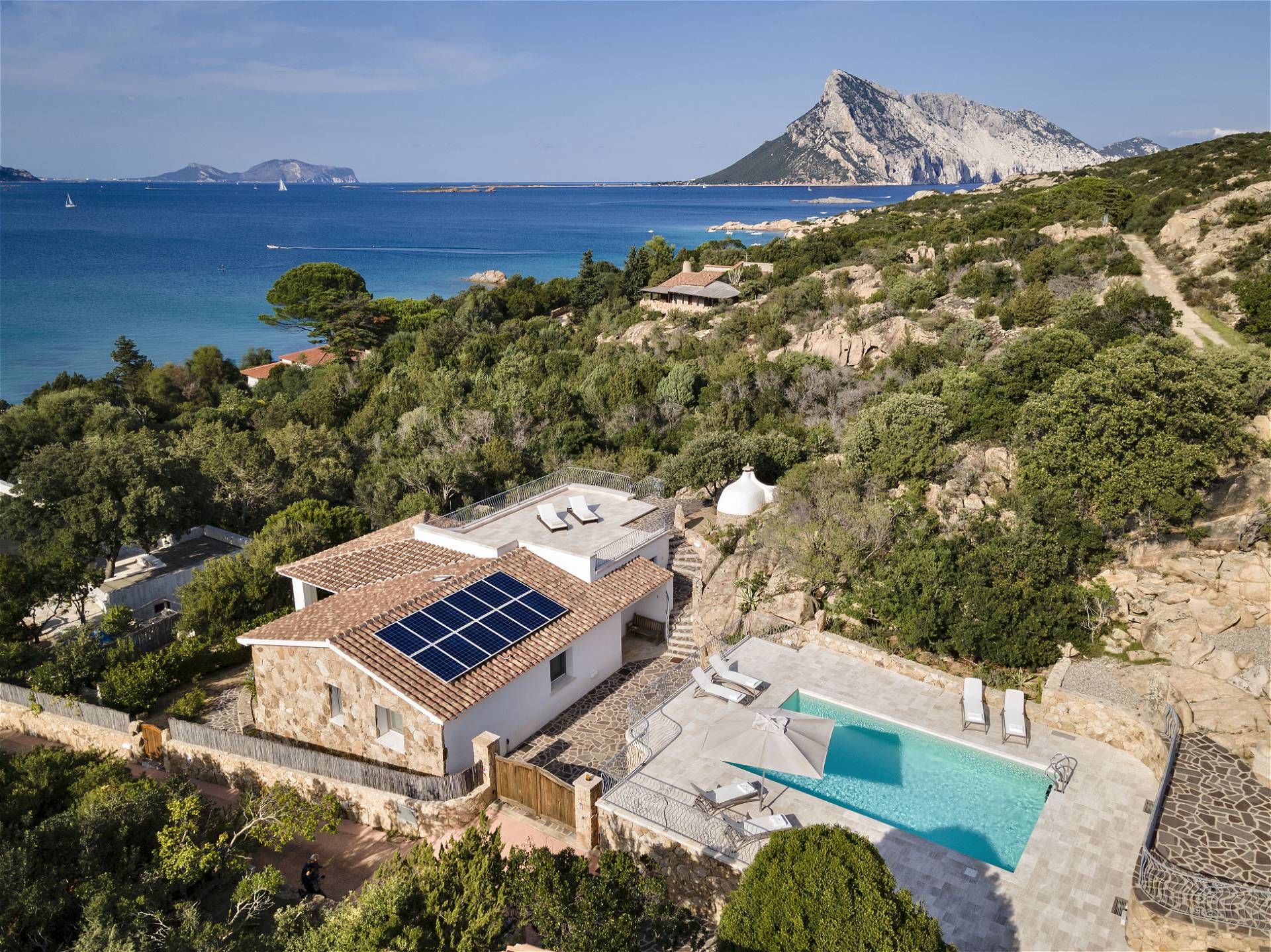 In una delle aree più suggestive della costa nord-orientale della Sardegna, proponiamo in vendita una raffinata villa con piscina privata, recentemente ristrutturata con materiali di pregio, scelti nel pieno rispetto del paesaggio e perfettamente integrati nel contesto naturale. La proprietà si inserisce armoniosamente nella macchia mediterranea, a pochi passi dalla splendida Cala Girgolu e dalla rinomata Spiaggia delle Vacche, offrendo un ambiente di straordinaria bellezza e autenticità. La villa principale dispone di tre camere da letto di cui due con bagno en-suite e un altro bagno al servizio di tutta la casa. Un’ampia e luminosa zona living si apre su una splendida terrazza panoramica con vista incantevole sull’isola di Tavolara. Uno spazio scenografico, ideale per momenti di relax e convivialità, immersi nei colori intensi e nei profumi della Sardegna. Completano la proprietà una dependance con ingresso indipendente composta da camera da letto, bagno e soggiorno, perfetta per accogliere ospiti in totale comfort e privacy, e una magnifica piscina privata incorniciata dal verde mediterraneo. Ulteriore valore è dato dai dettagli architettonici e dalle finiture che impreziosiscono l’immobile, tra cui l’elegante utilizzo del pregiato marmo di Orosei, materiale simbolo della tradizione sarda, capace di conferire luminosità, raffinatezza e un forte legame con il territorio. Una residenza di charme, ideale come dimora esclusiva o investimento di prestigio, in una delle location più ambite della Sardegna.